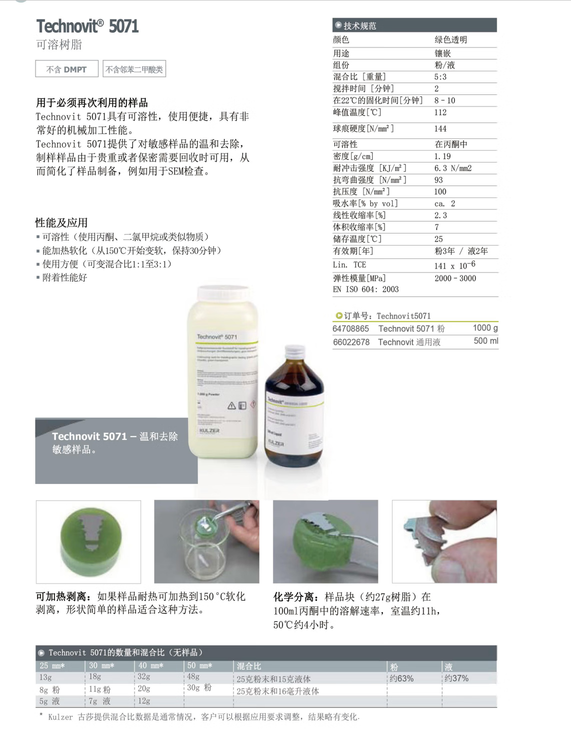 Dissolvable cold mounting 5071 resin Technovit5071 resin Technovit universal liquid 500ml