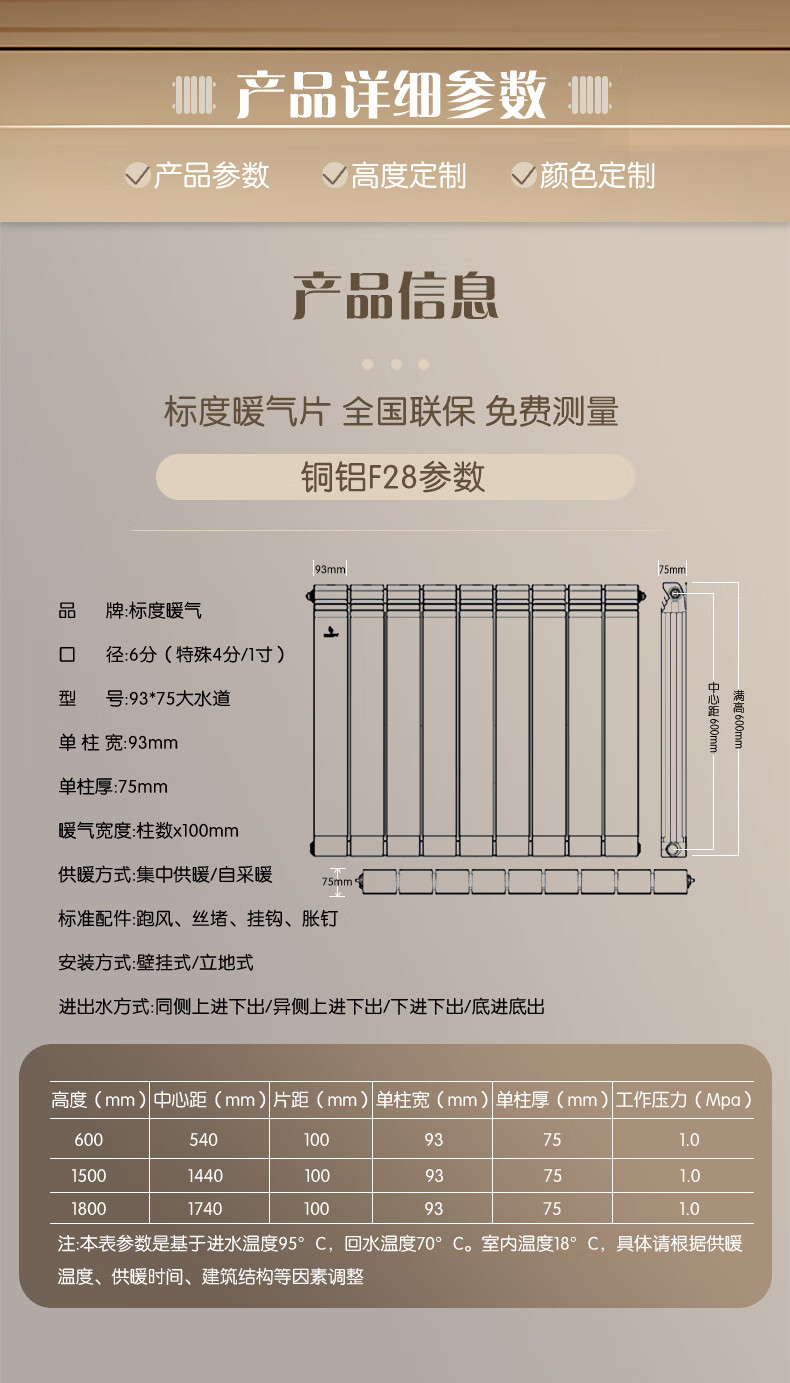 Scale heating radiator, household water heating, floor heating radiator, self-heating, centralized cooling, copper-aluminum composite wall-mounted vertical radiator, single column price, size can be customized, three columns starting from 400mm