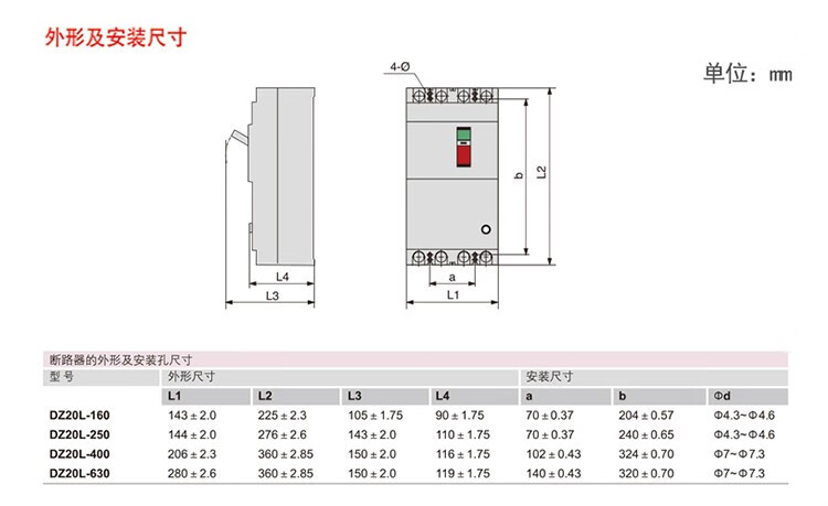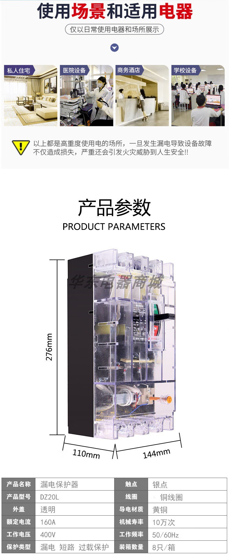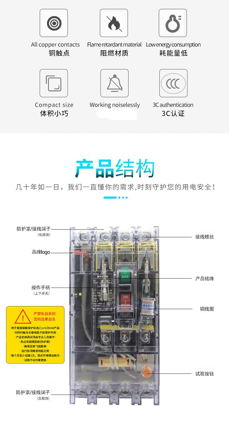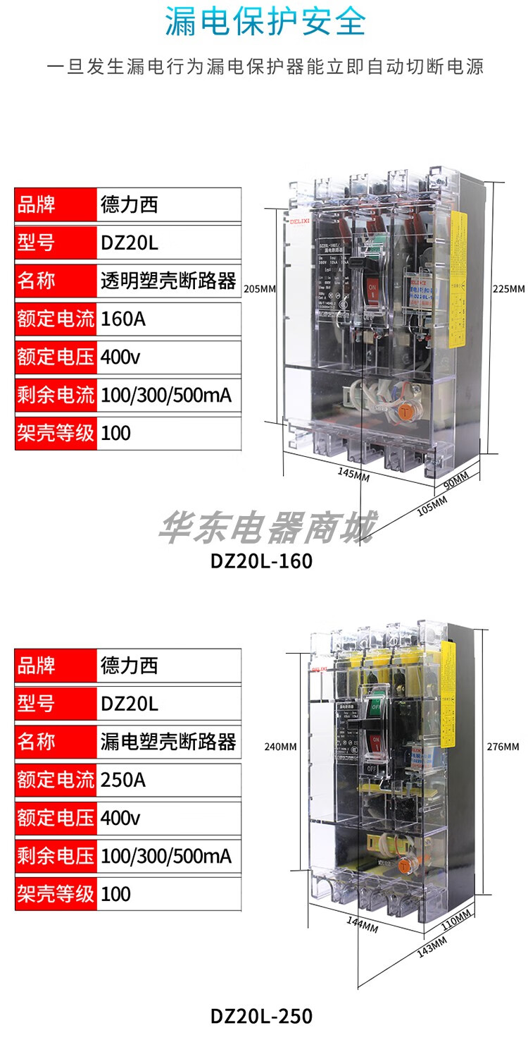 Transparent leakage protection DZ20L-160T/4300 250A 400A leakage protection circuit breaker 4P 200A 4p