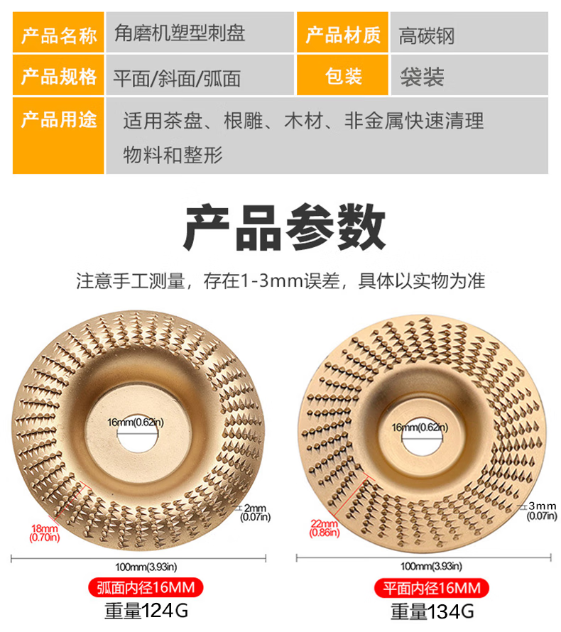 Shantou Lincun angle grinder polishing disc wood wood polishing wheel grinding wheel tool woodworking grinding disc thorn disc grinding disc artifact woodworking grinding thorn disc plane + bevel + arc suitable for 100 type angle grinder