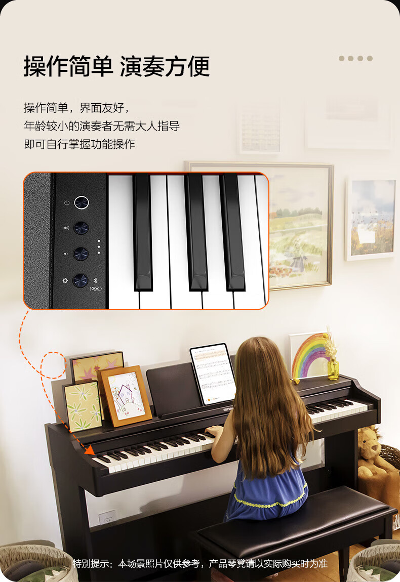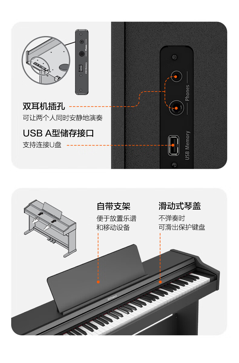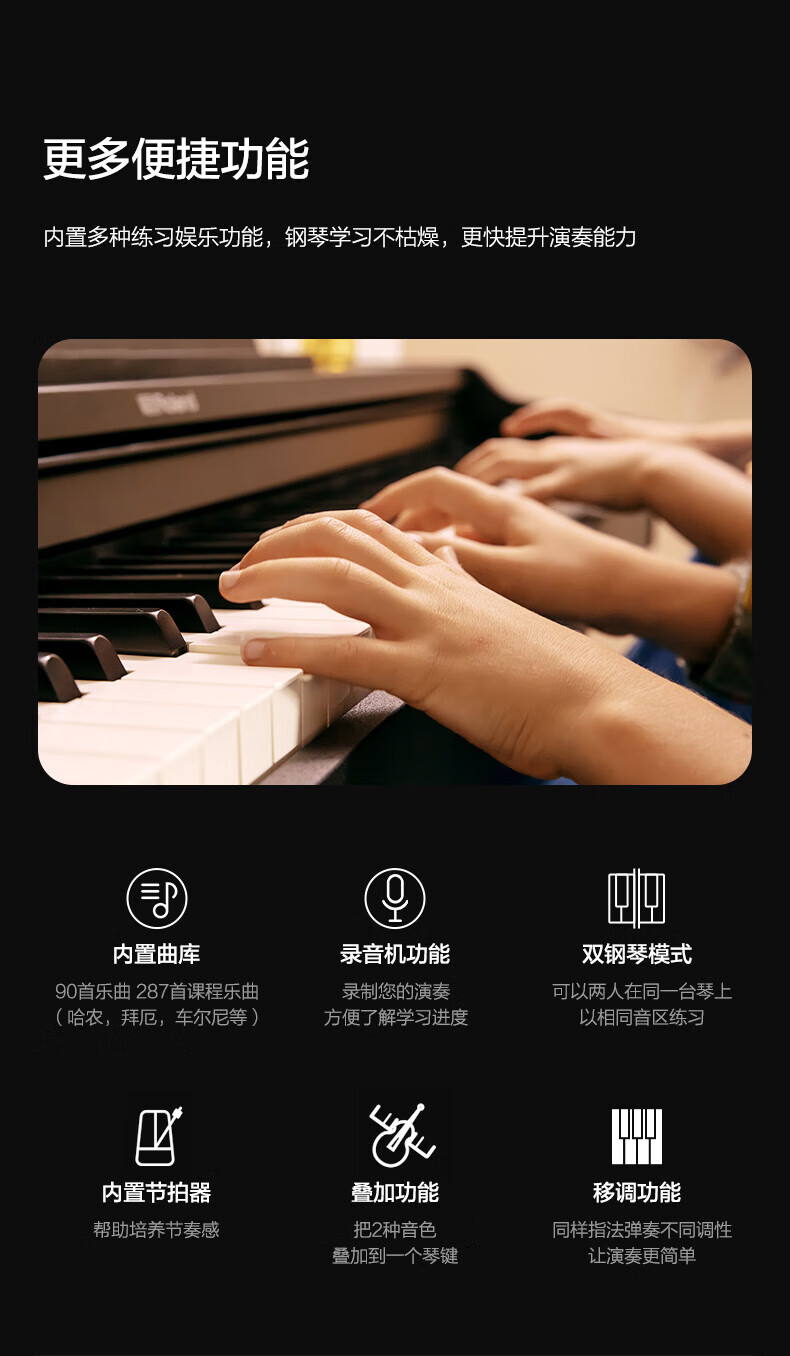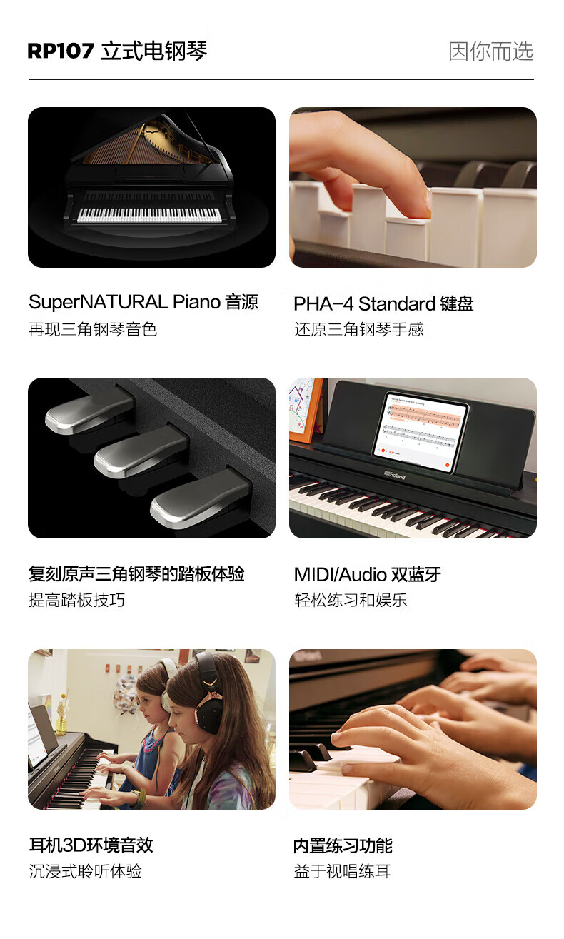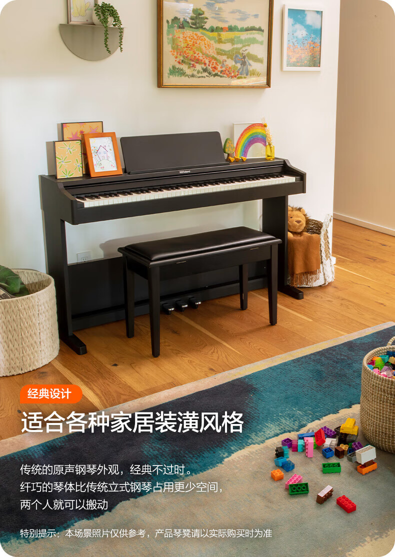 Roland electric piano RP107/F107 Bluetooth smart teaching 88-key heavy hammer professional adult home upright digital piano RP107 black (including piano stool) + original RH5 headphones + accessories gift bag