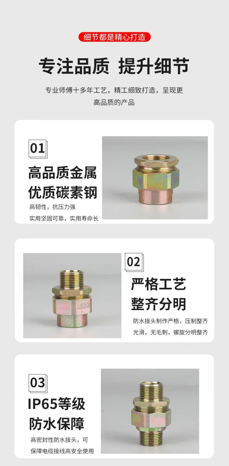BGJ explosion-proof union G3/4 internal and external thread carbon steel galvanized inner wire joint M20NPT25 one inner and one outer wire DN15 (4 points) double inner wire
