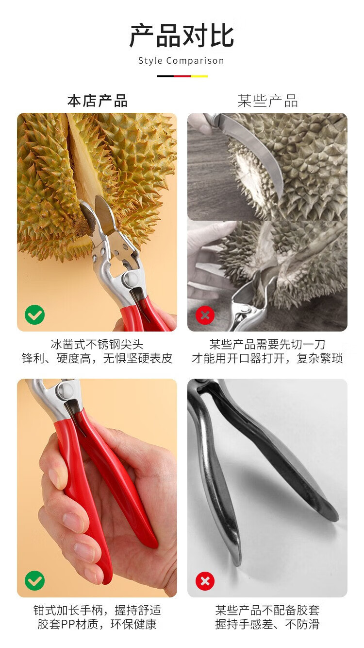 Yingrong new durian opener clip to open watermelon durian pliers fruit opener to peel durian special knife to open durian tool upgraded anti-slip durian opener