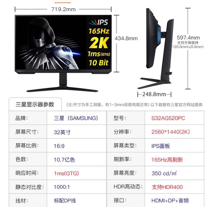 Monitor 32-inch 2K144HZAOC Boundless Ultra HD 1MS1500R HDR High Color Screen Computer E-Sports Display Black Myth AOC2K144HZ 32-inch Boundless 90% New