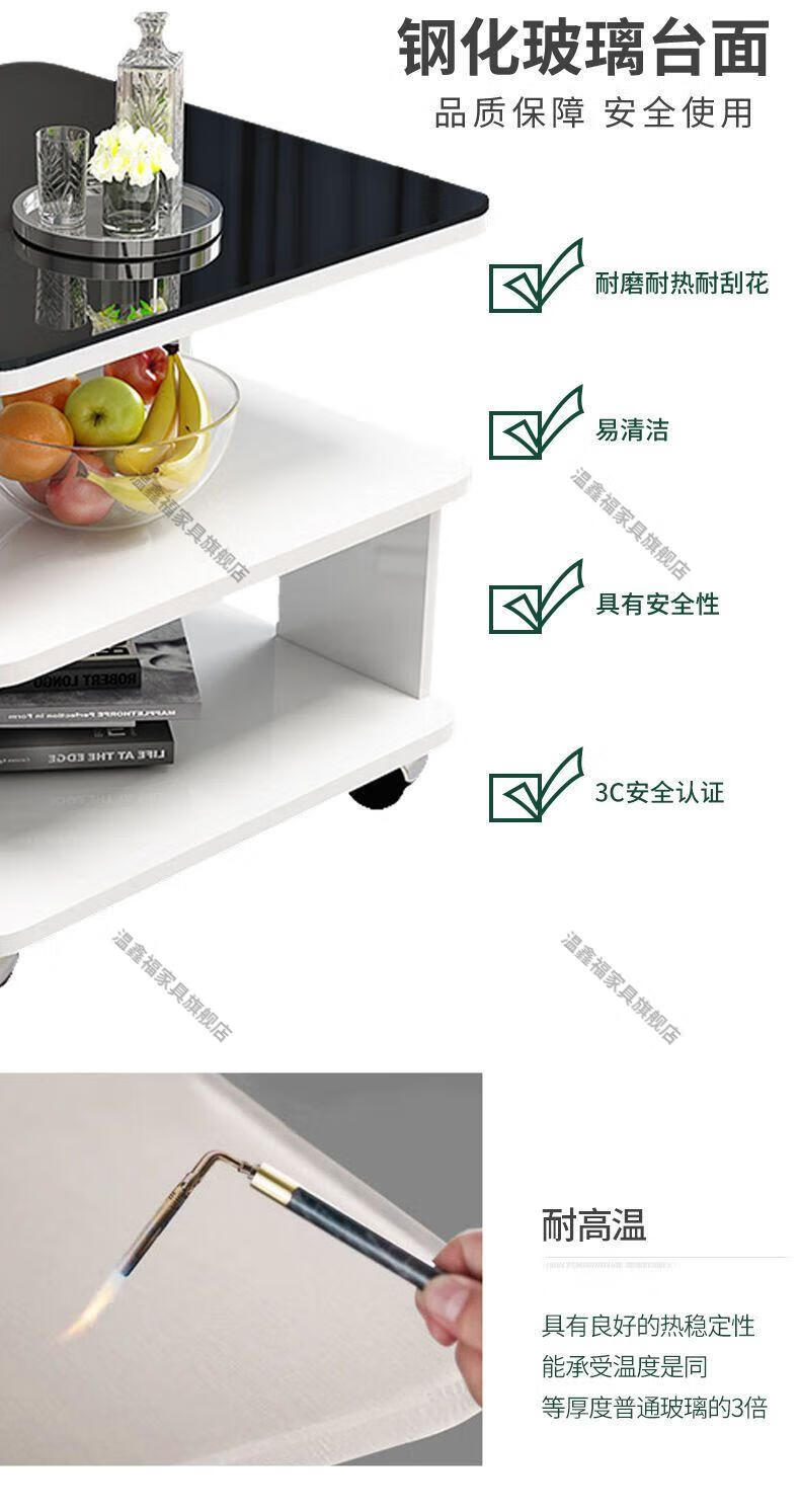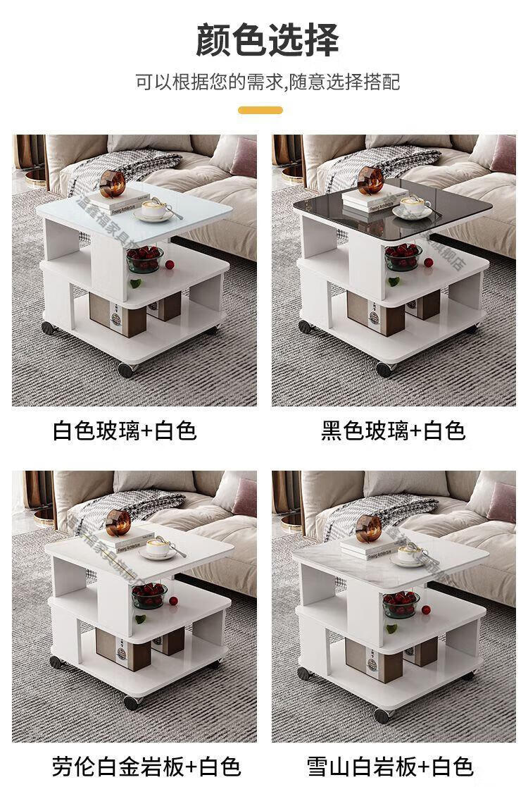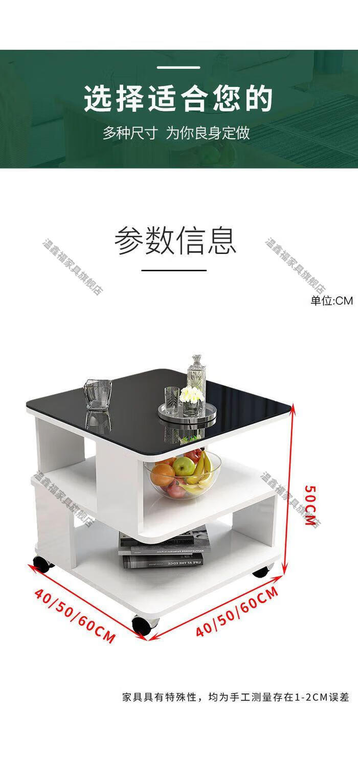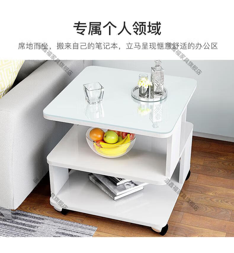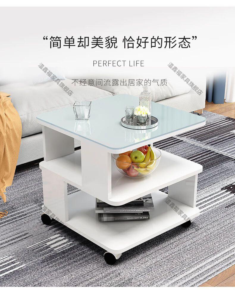 Wen Xinfu rounded corners simple modern tempered glass square table living room sofa side table bedroom mobile small tea table small coffee table warm white + no glass length 40*width 40*height 50 cm
