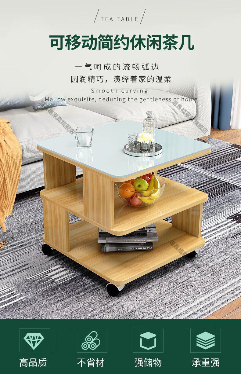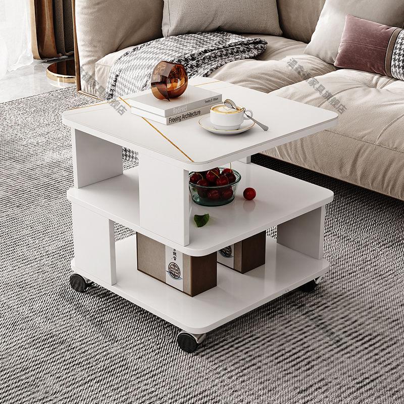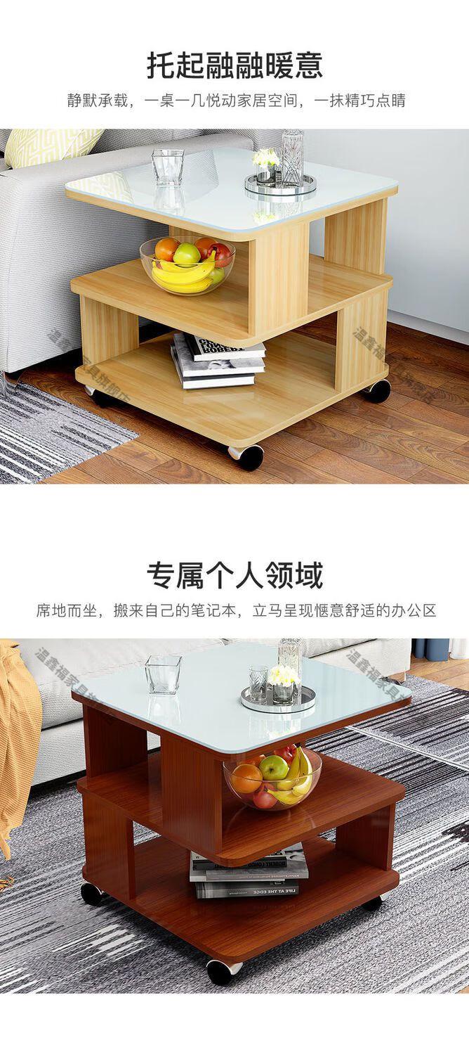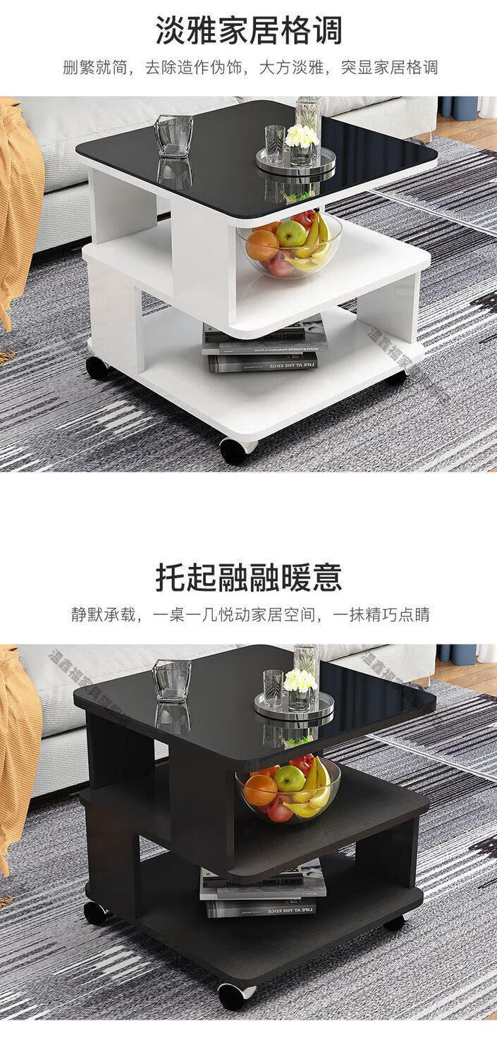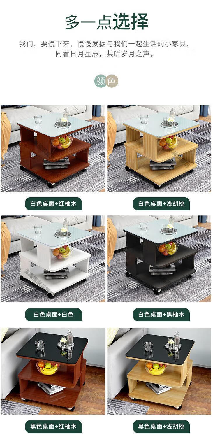 Wen Xinfu rounded corners simple modern tempered glass square table living room sofa side table bedroom mobile small tea table small coffee table warm white + no glass length 40*width 40*height 50 cm