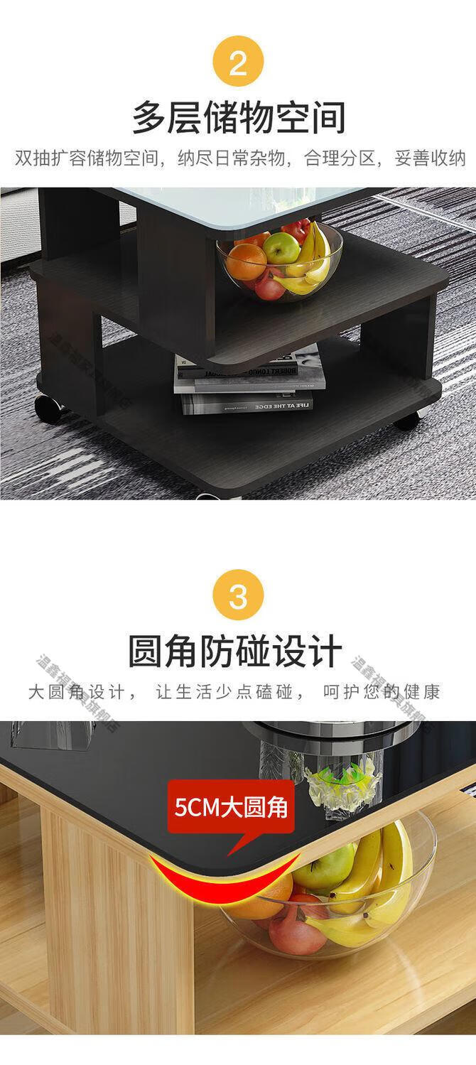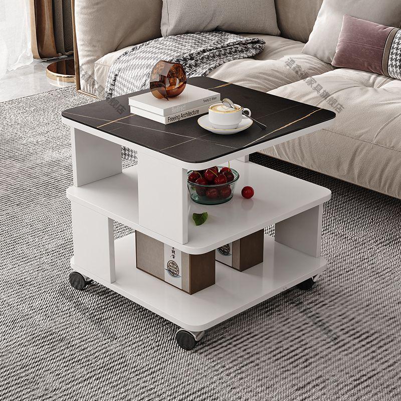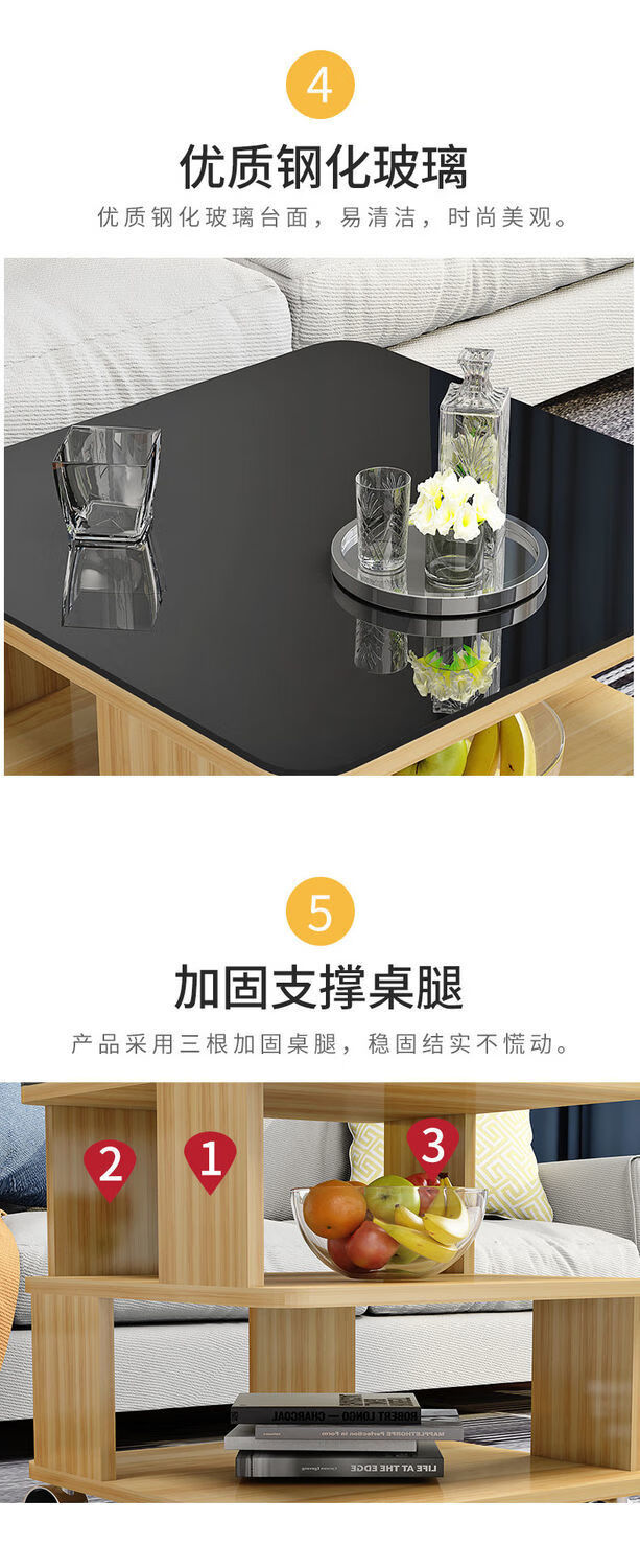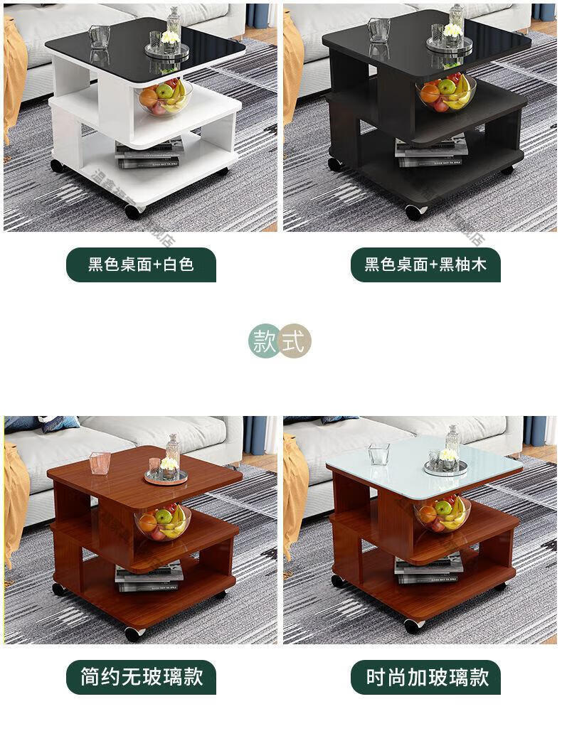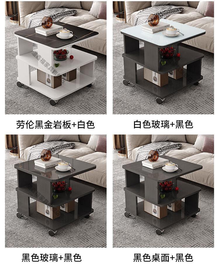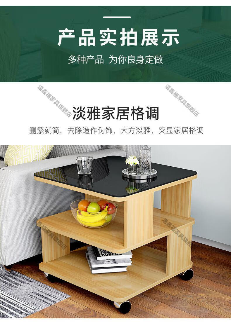 Wen Xinfu rounded corners simple modern tempered glass square table living room sofa side table bedroom mobile small tea table small coffee table warm white + no glass length 40*width 40*height 50 cm