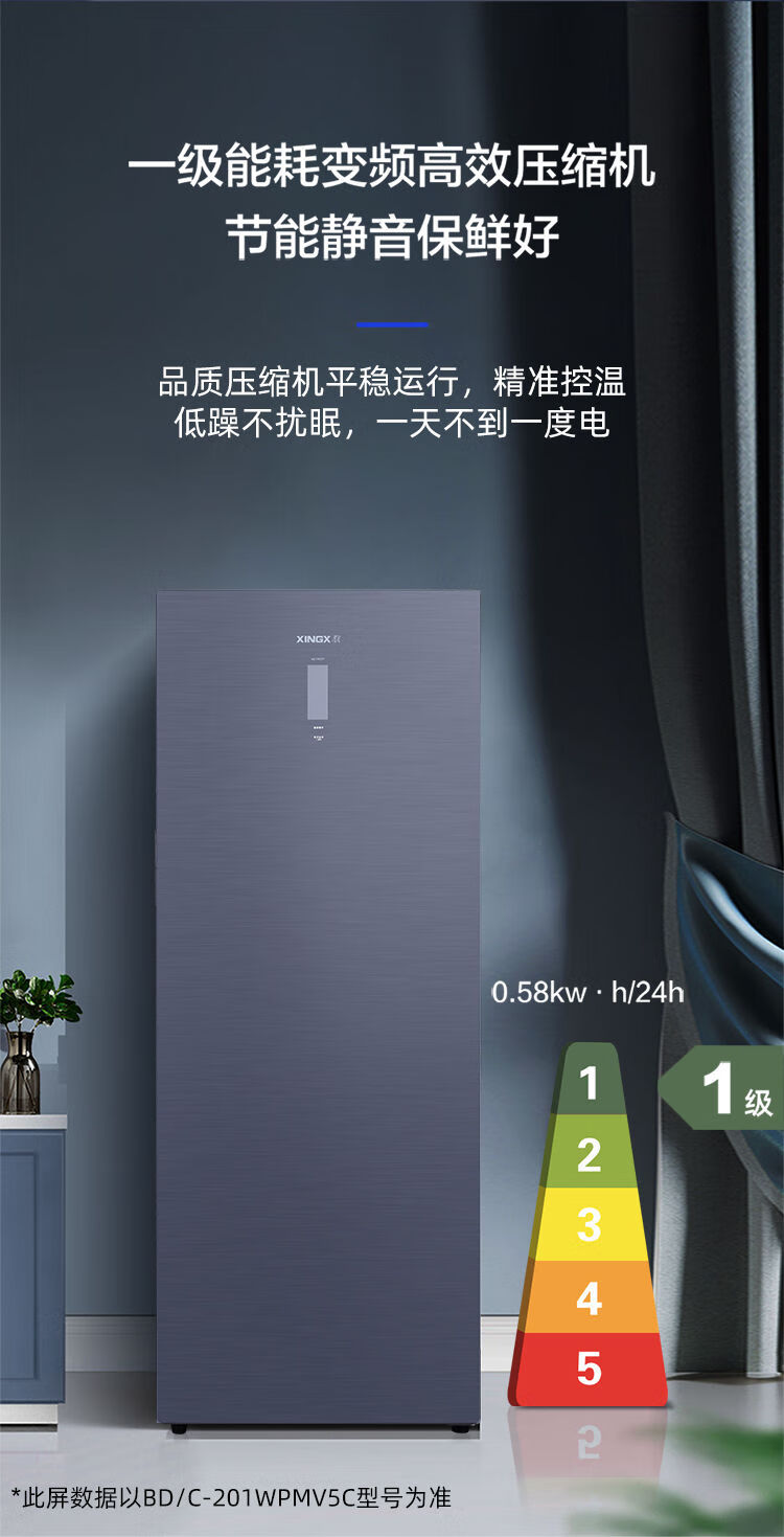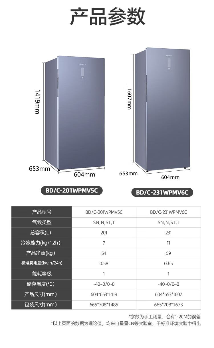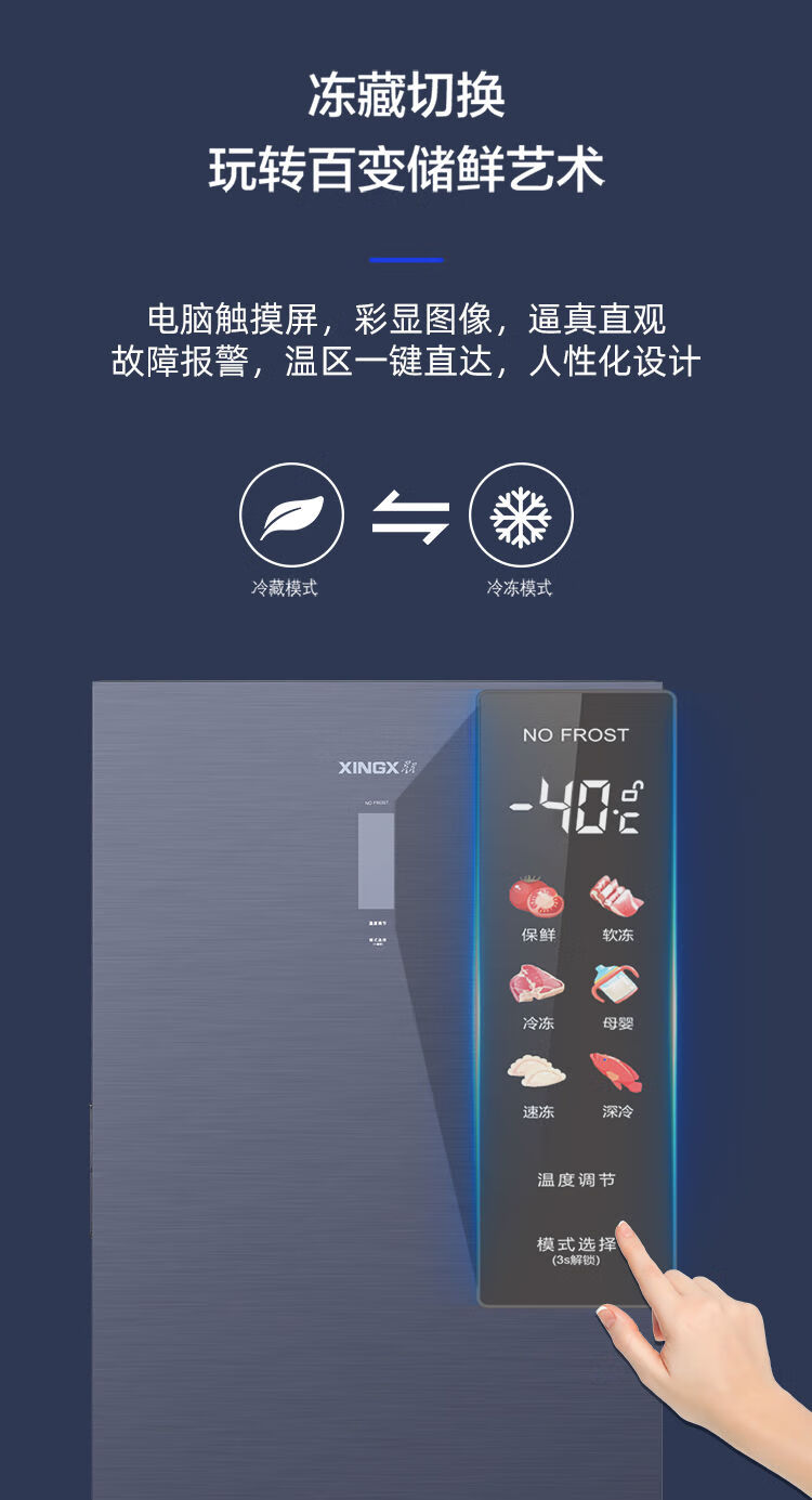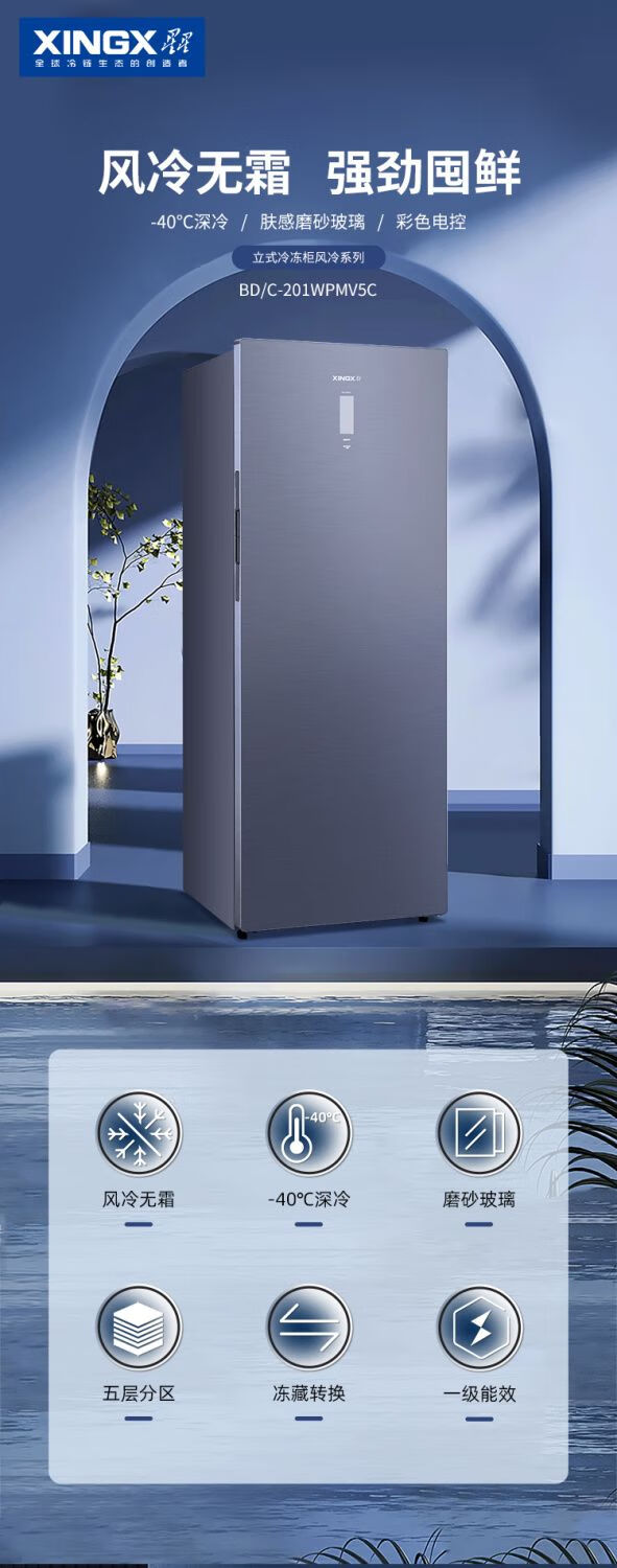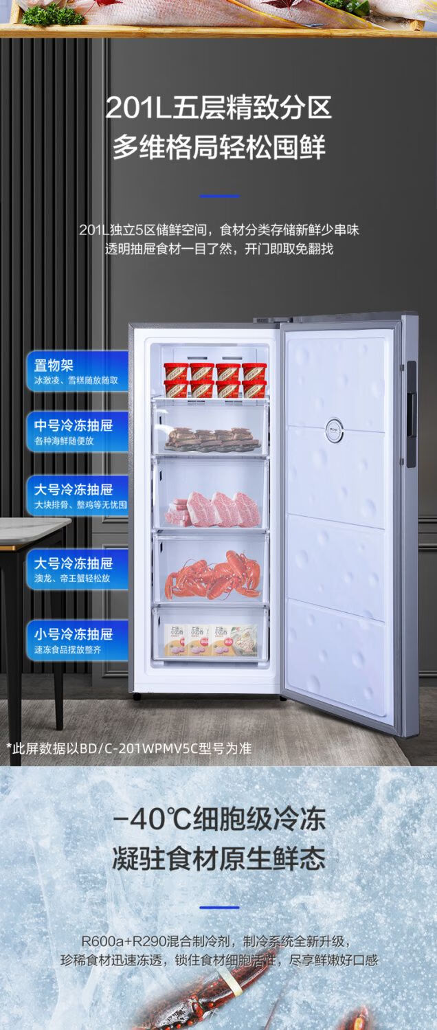 Star Freezer Air-cooled Frost-free Upright Freezer-40 First-Class Energy Efficiency Energy-Saving Cryogenic Refrigerator Freezer-40 Degrees Air-cooled Frost-free 201WPM