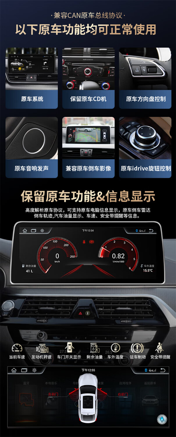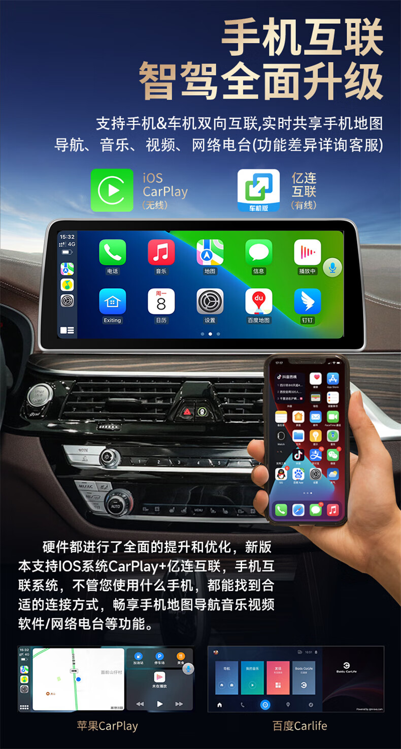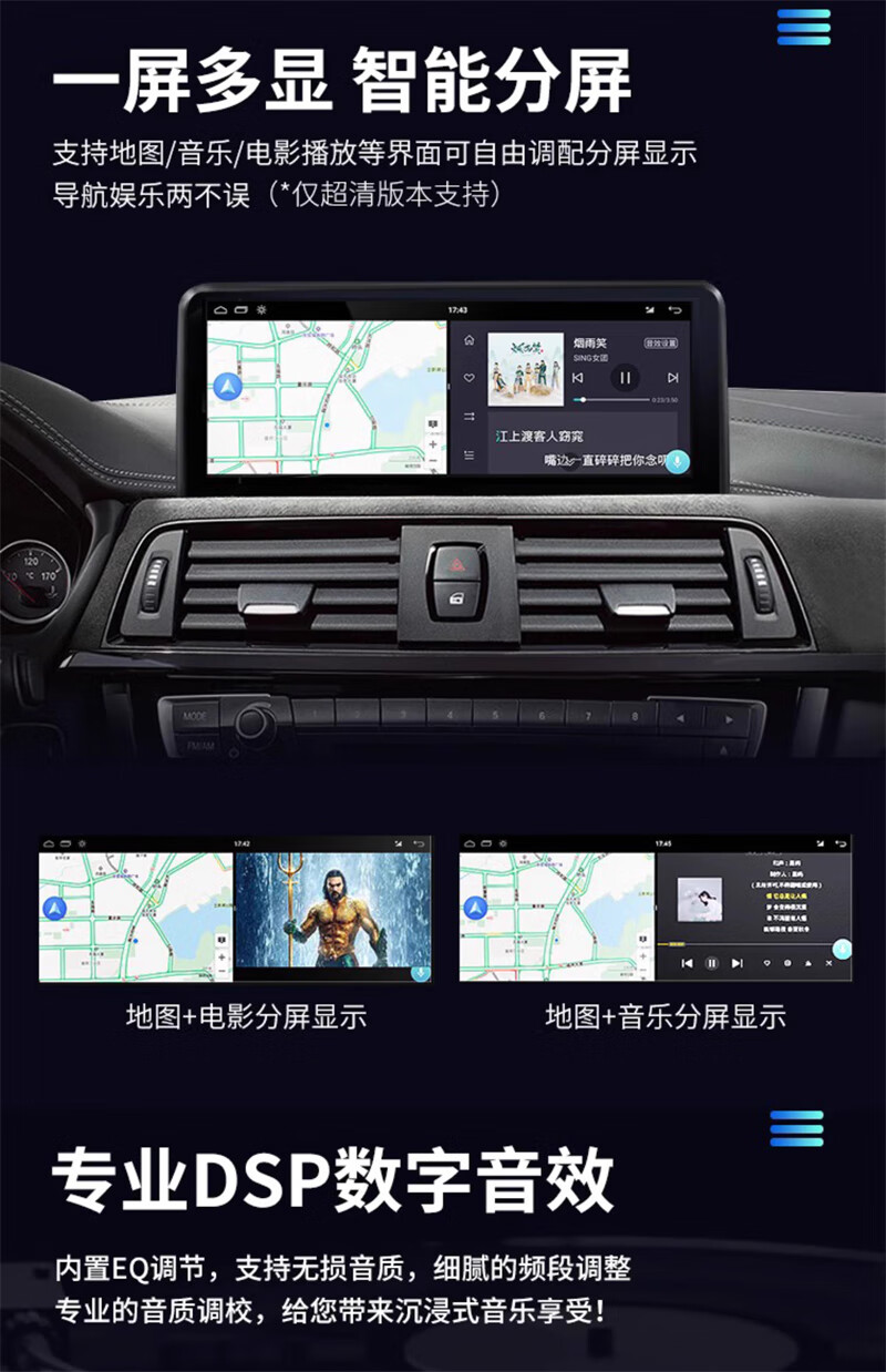 Lushihang BMW 5 Series 3 Series 1 Series 320li modified x1x3 x5 x6 car central control display large screen navigation all-in-one 10.25-inch Android large screen + carplay + hicar eight-core 4G version (4 + 32G) + reversing image + recorder