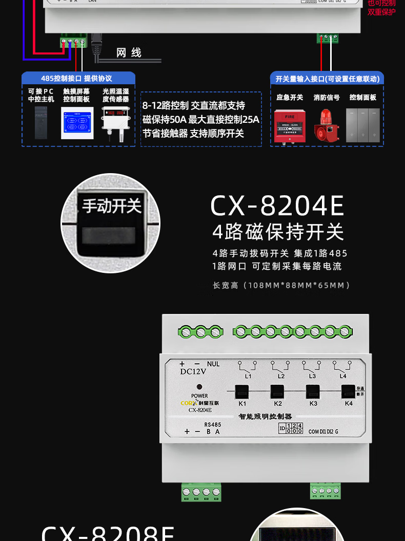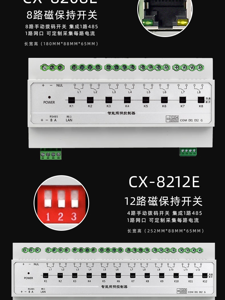 50A high current network port 485 light control timing light control intelligent lighting module switch led light 12/6 channels network port-CX-8212E 12 channels 50A+ LAN