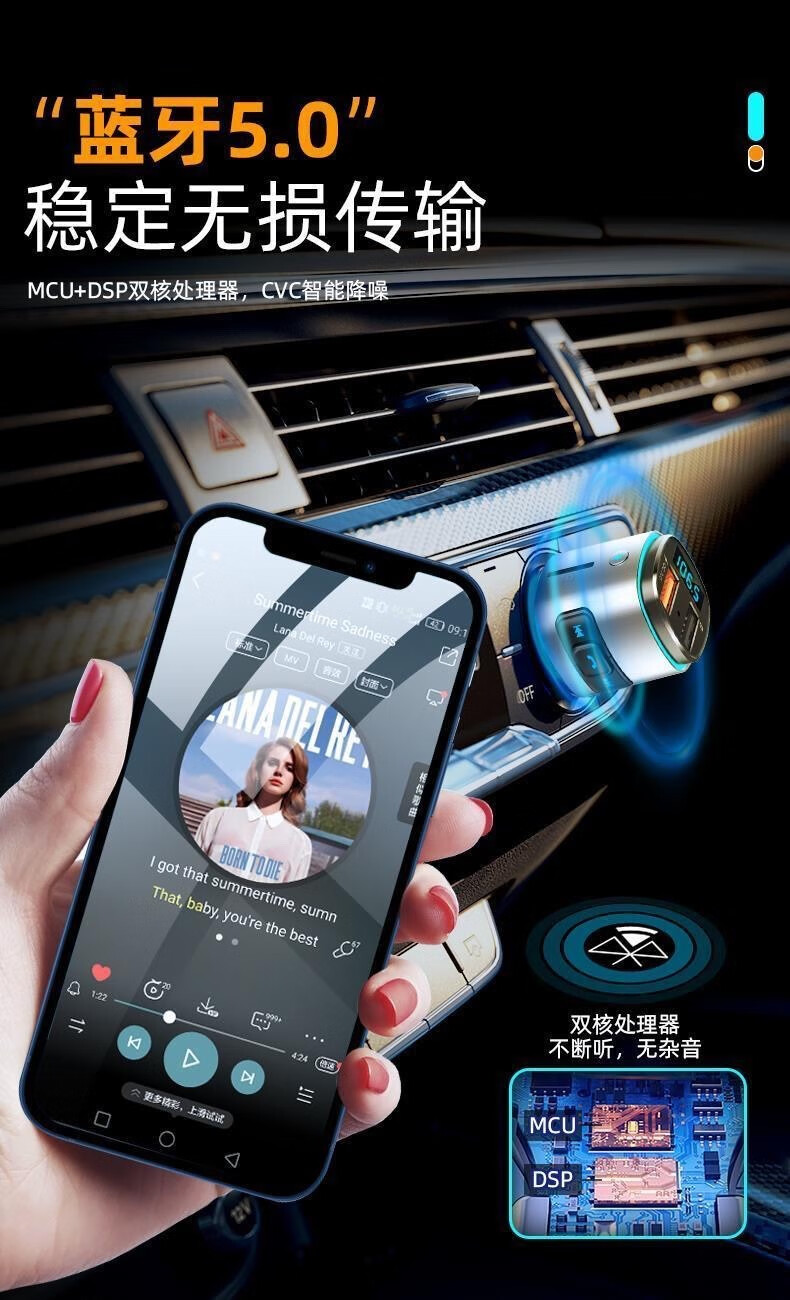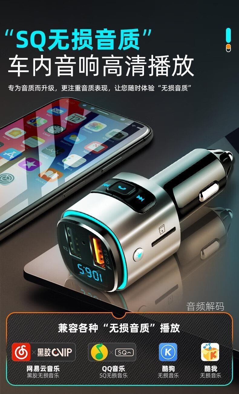 Newman Car MP3 Player Bluetooth Receiver 5.0 Lossless Sound Quality Multifunctional Car Charger (Exclusive Edition) Bluetooth 5.0 Lossless Sound Quality