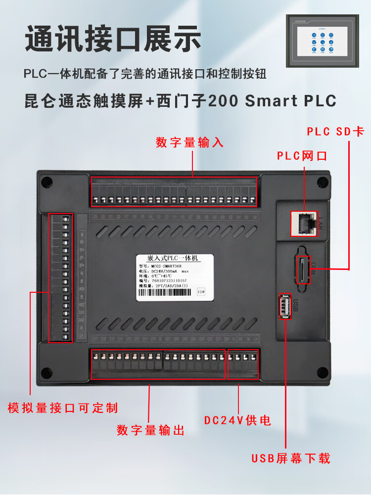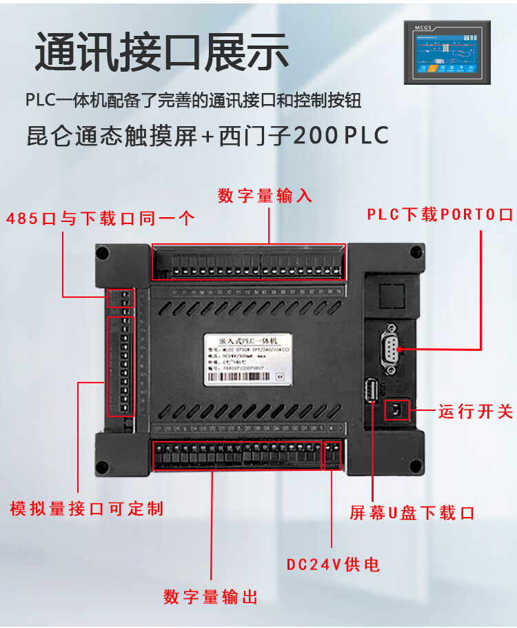 MCGS Kunlun Tongtai 7cun plc touch screen all-in-one machine is compatible with Siemens 224XP smart200 SR40 MCGS-S7-32R-4PT 1DA 16DI/