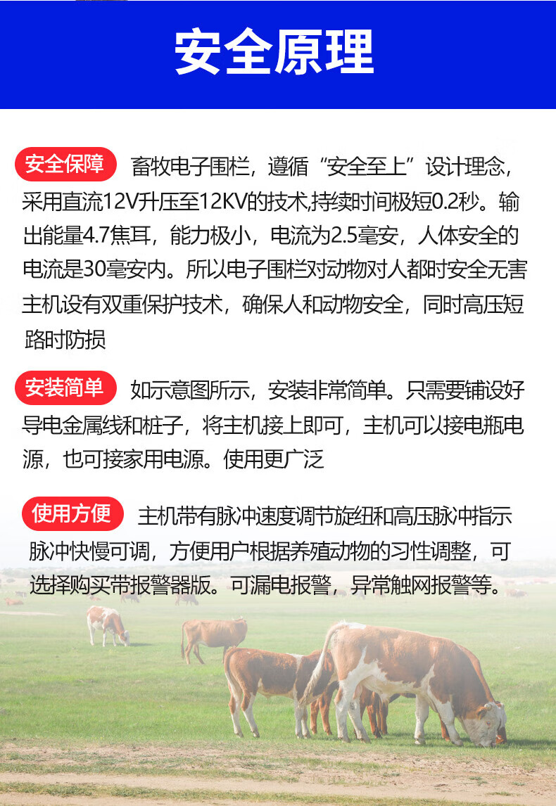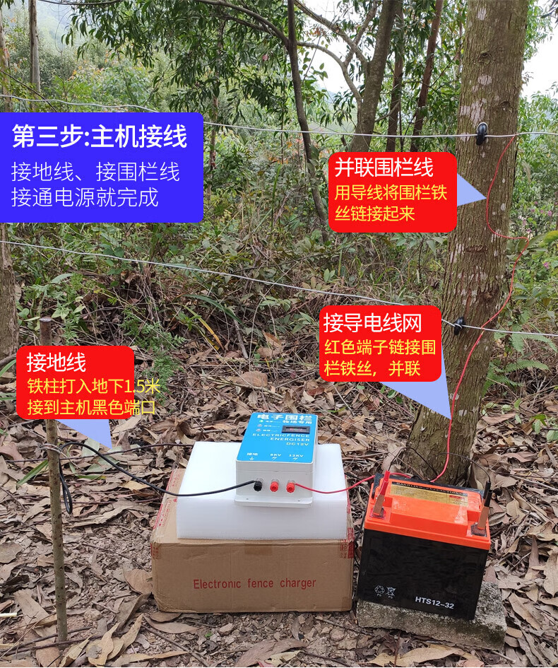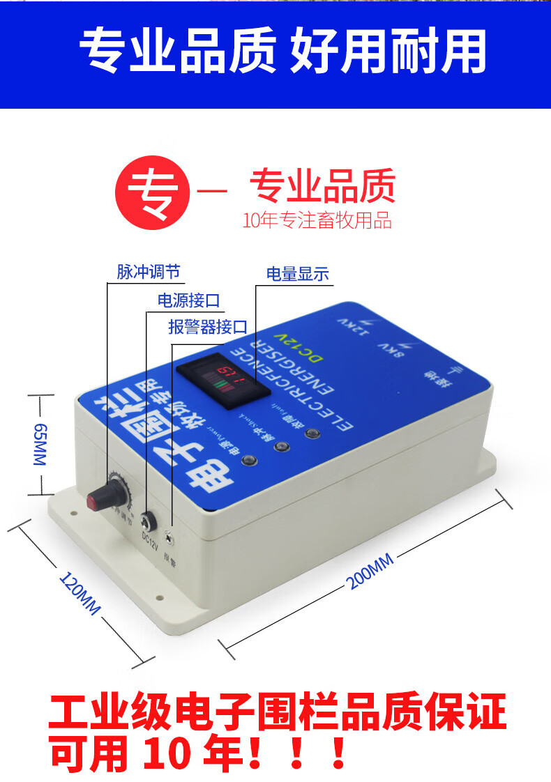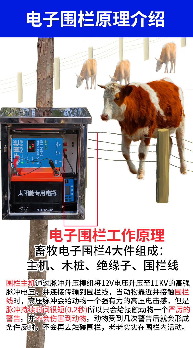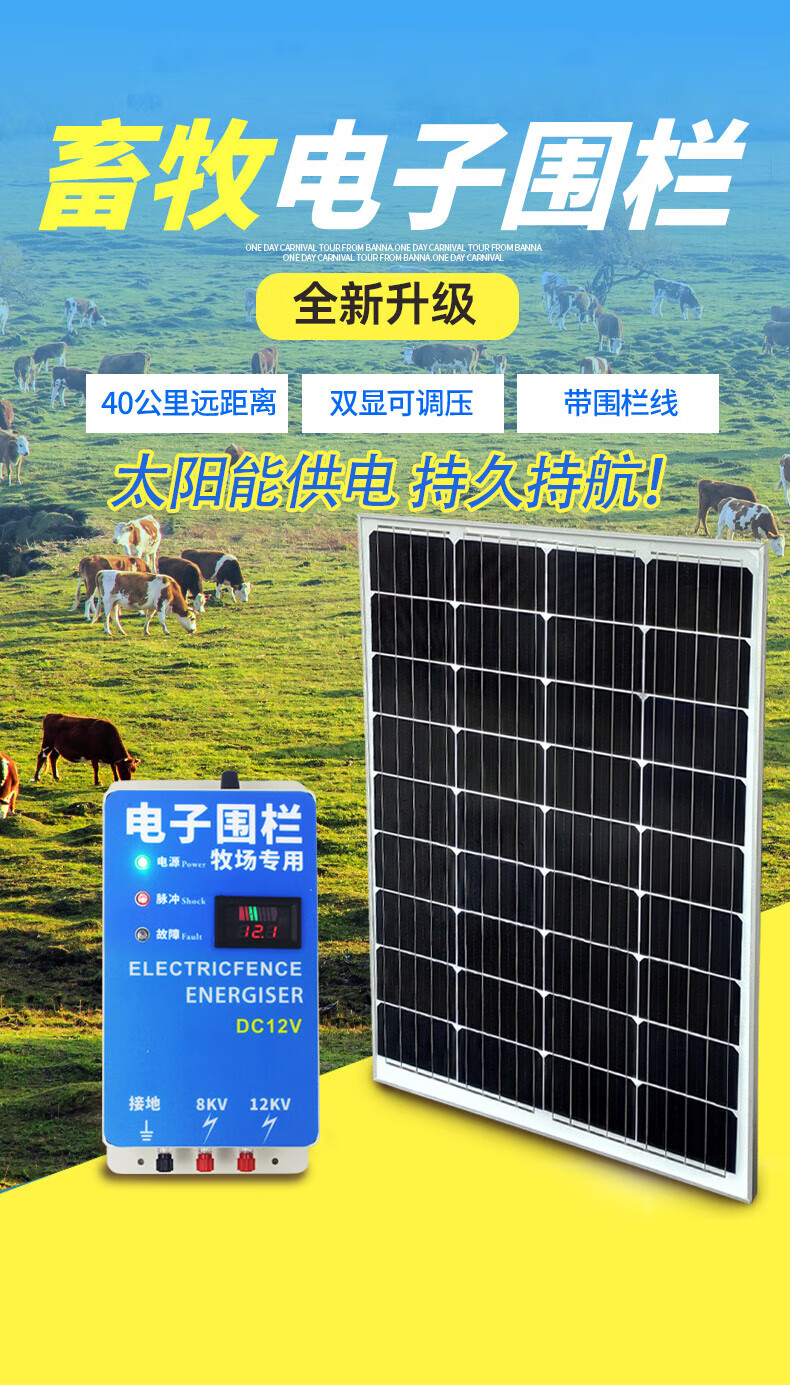 Solar electronic fence complete set of livestock grid fence pulse breeding cattle, sheep and pig anti-wild boar electric fence 20 km electronic fence set (with battery)