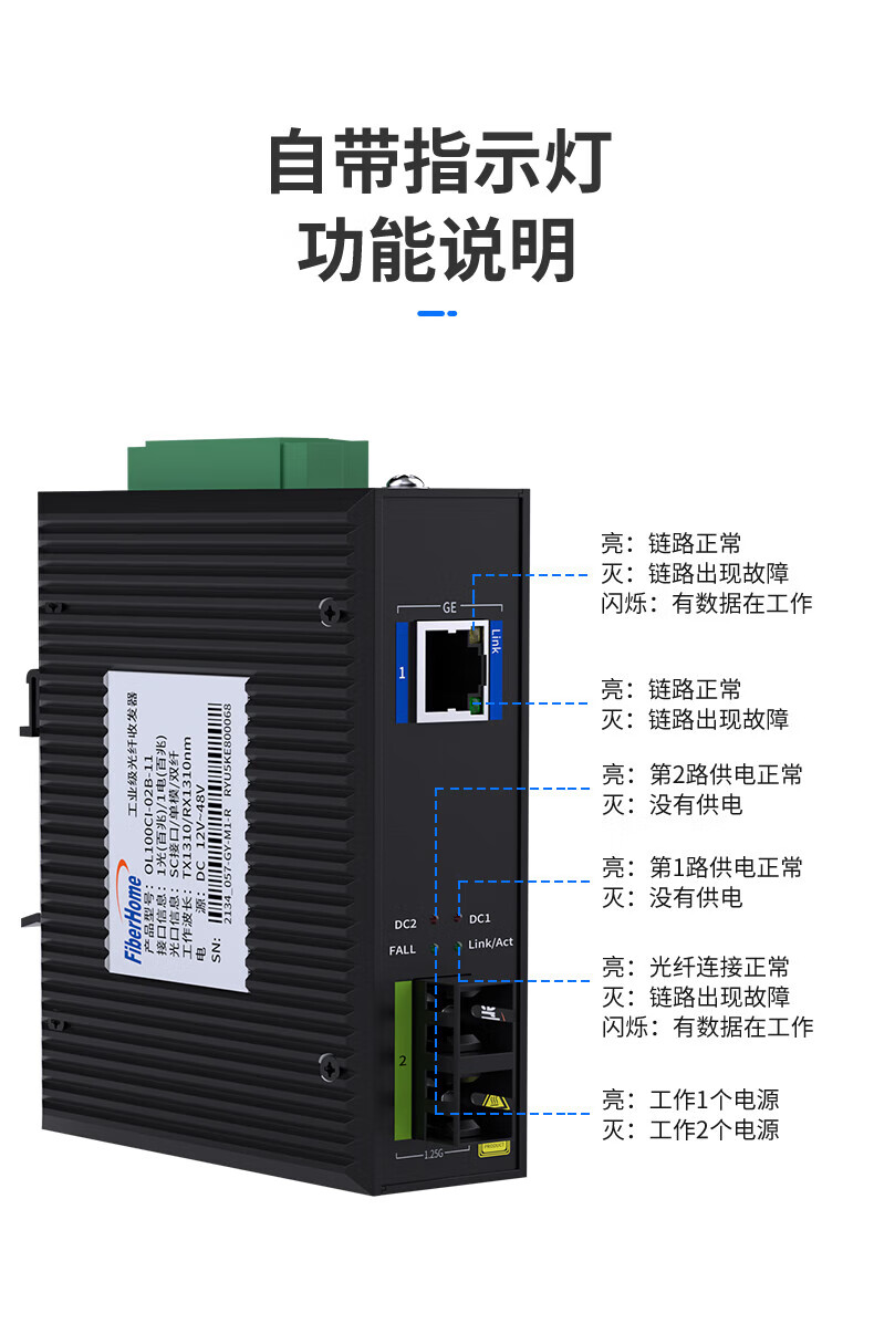 Industrial-grade single-mode dual-fiber 100M fiber optic transceiver Gigabit photoelectric converter single-mode optical fiber transceiver OL100CI-02B-11 single-mode dual-fiber 100M transceiver