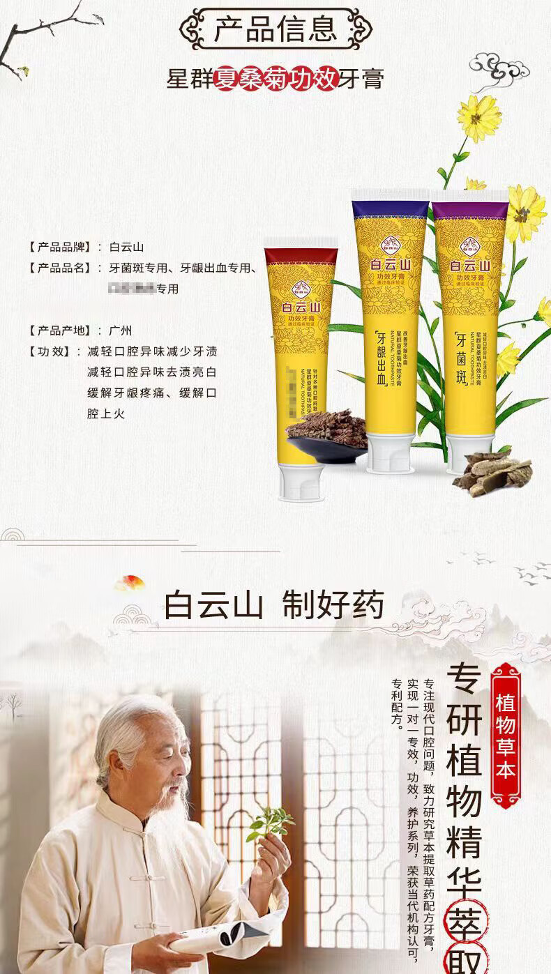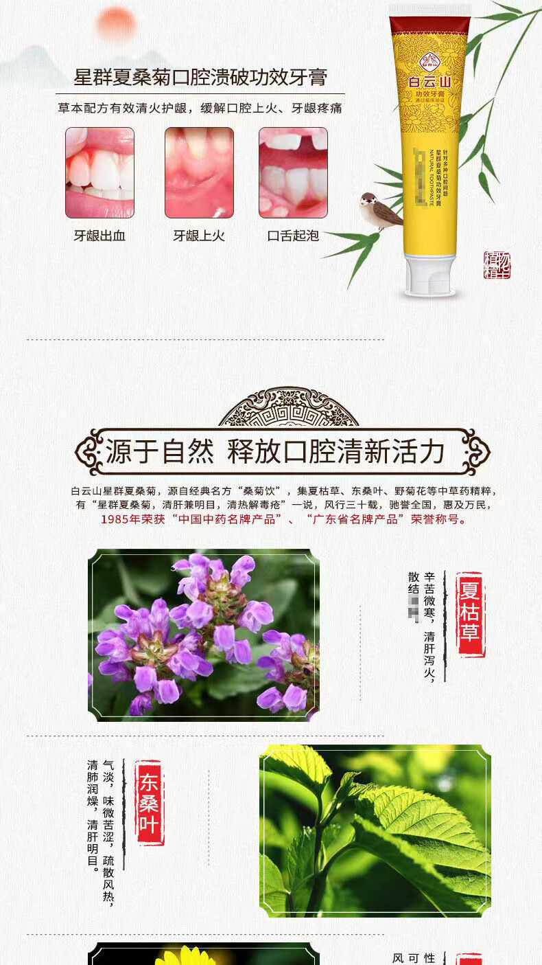 Baiyunshan Oral Ulcer Toothpaste Probiotic Toothpaste Xia Sangju Effective Teeth Yellowing, Plaque and Tissue Xia Sangju Oral Ulcer Toothpaste (New Packaging) 1 Pack Trial Pack