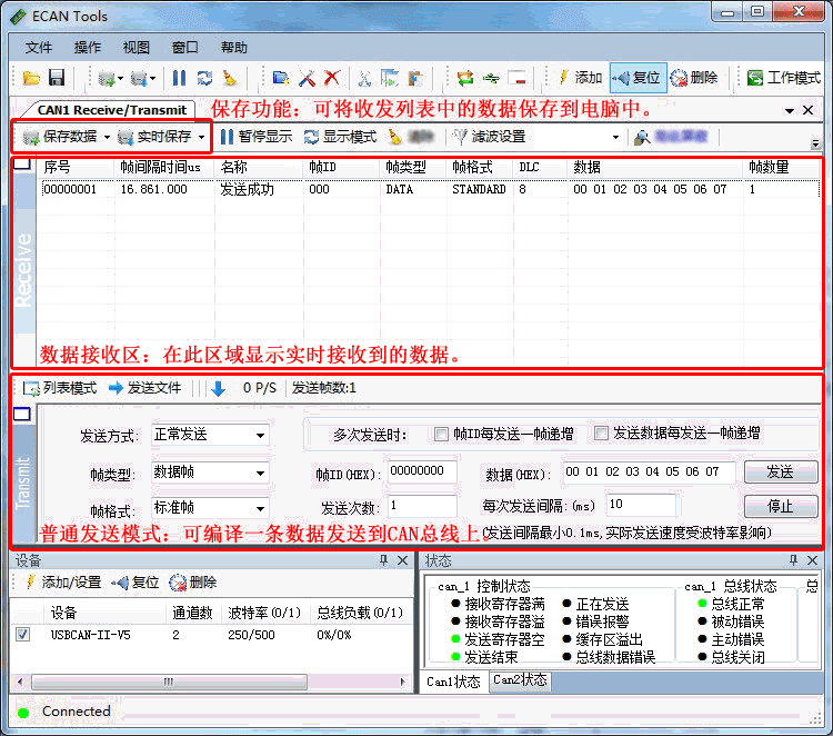 USB to CAN bus analyzer Zhou Ligong CAN debugging CANopen protocol analysis usbcan module USBCANPro