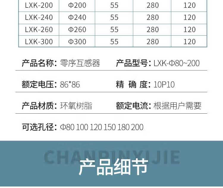 High voltage zero sequence current transformer open type transformer LXK80/100/120/150/180/200 aperture 200mm 50-2000/5