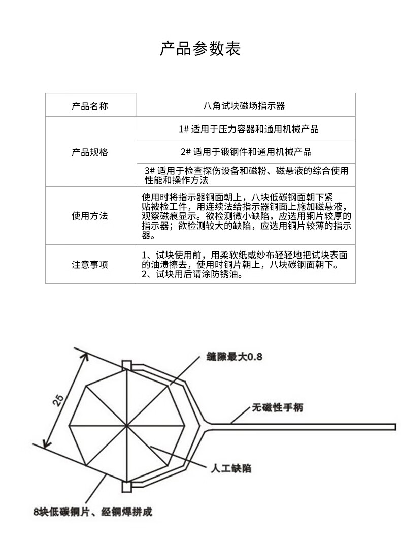 HK-1 type magnetic field indicator octagonal test block non-destructive testing equipment magnetic particle testing sensitivity HK-2 type double-sided copper block