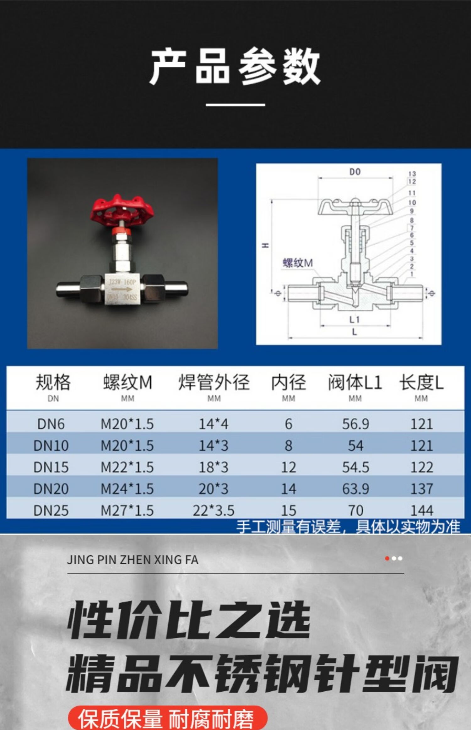 Stainless steel needle valve J23W-160P butt welding type 304 instrument movable joint external thread stop valve 316 material J23W-160R DN20 welded pipe outer diameter