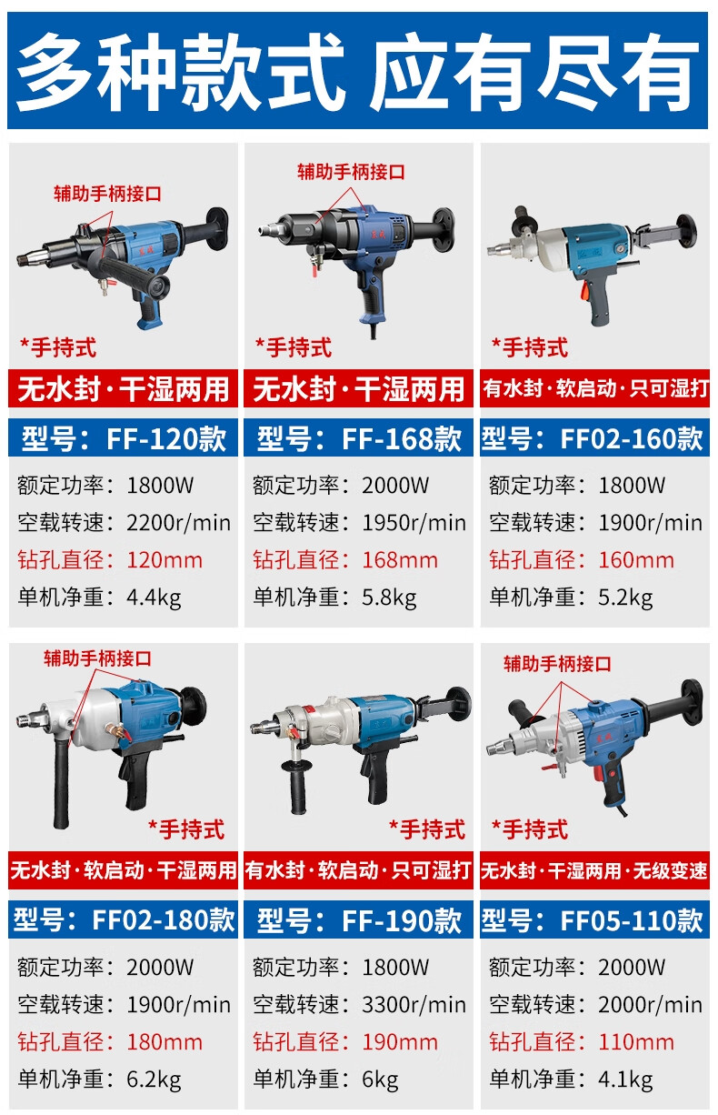 Dongcheng water drill drilling machine water drilling machine high power handheld concrete air conditioner range hood opening machine drilling machine FF05-110 (2000W) standard