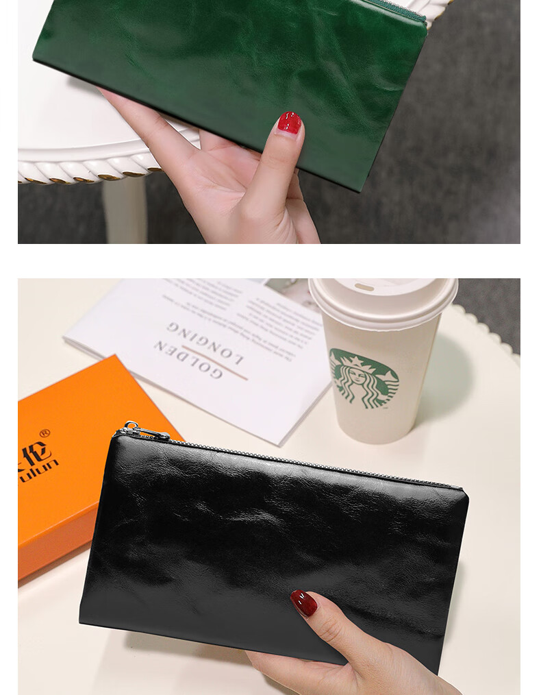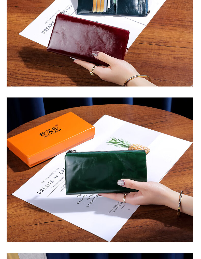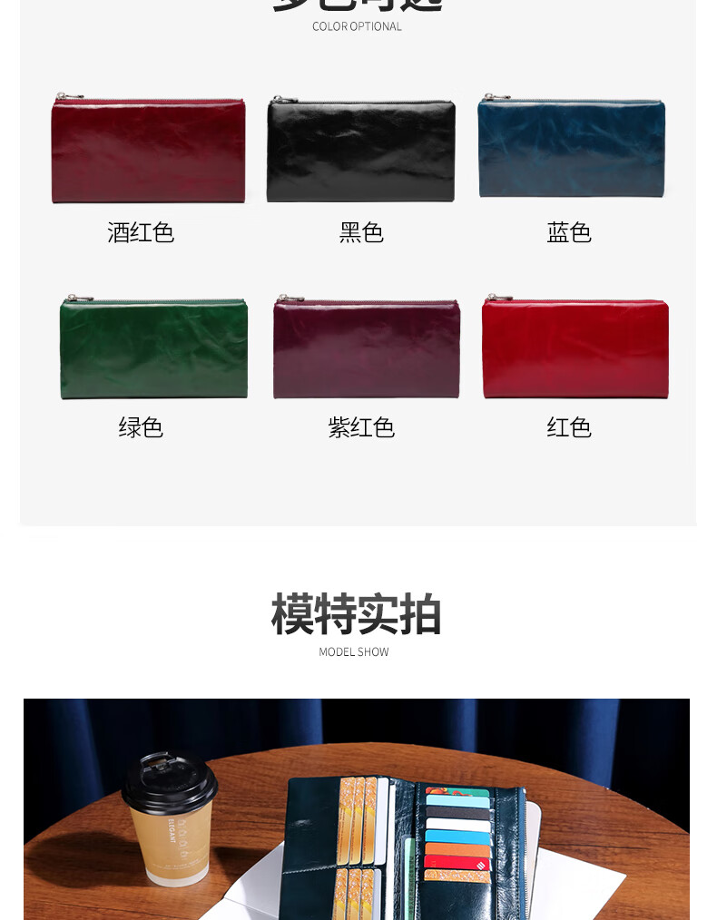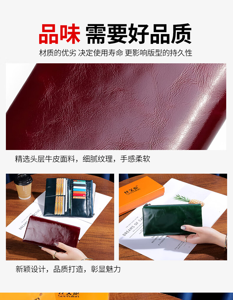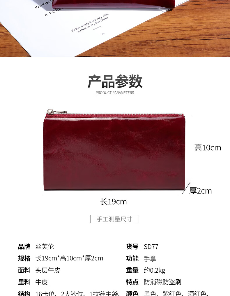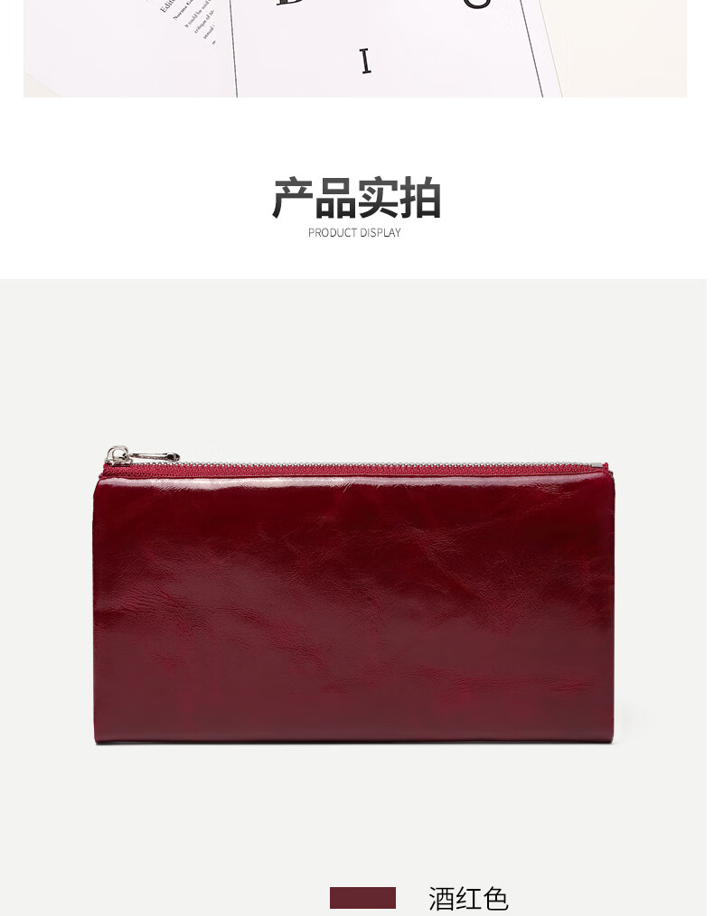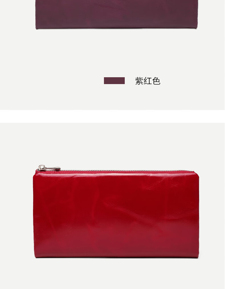 Sephoron New Year's Long Two-Fold Cowhide Wallet 16 Card Slots Large Capacity Large Bill Clip Zipper Coin Purse Ultra-Thin Wallet Burgundy - First-layer Cowhide Inside and Out