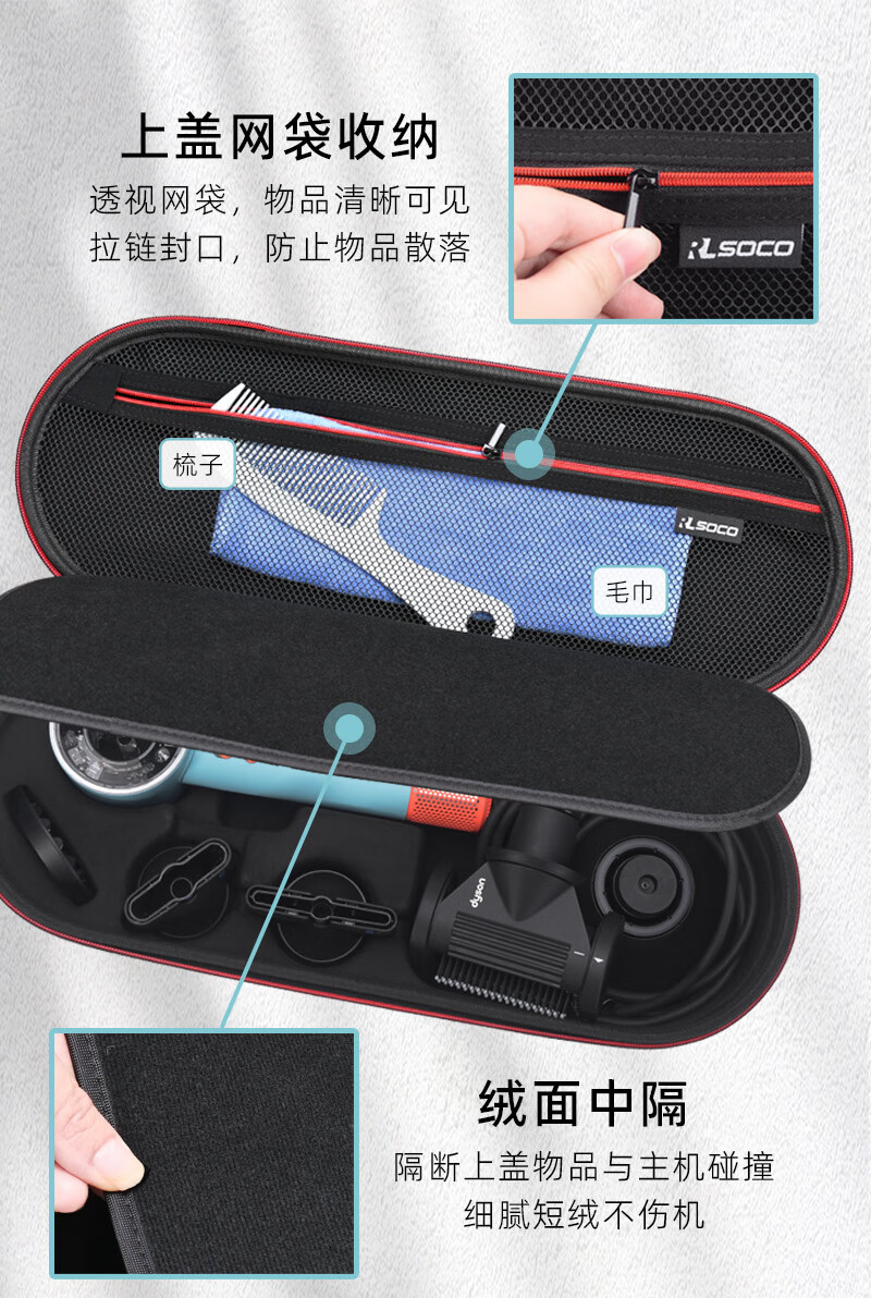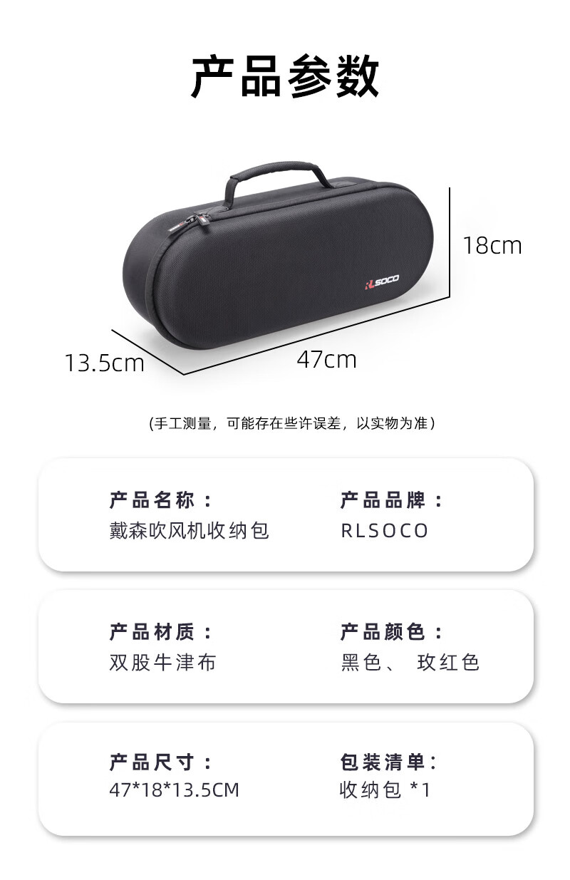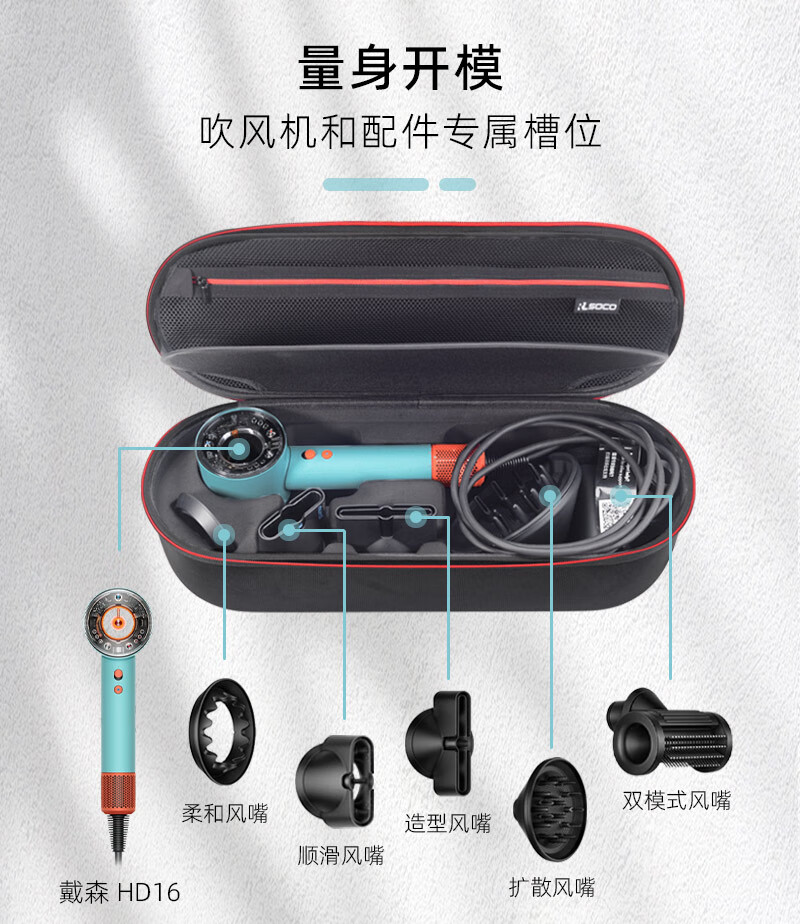 RLSOCO is suitable for Dyson HD16 storage bag smart hair dryer Supersonic protective box DYSON hair dryer hard bag HD16 set storage bag (bag only) black