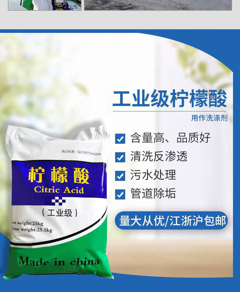 Citric acid monohydrate 25 kg industrial descaler sewage treatment water pipe cleaning rust remover cleaner