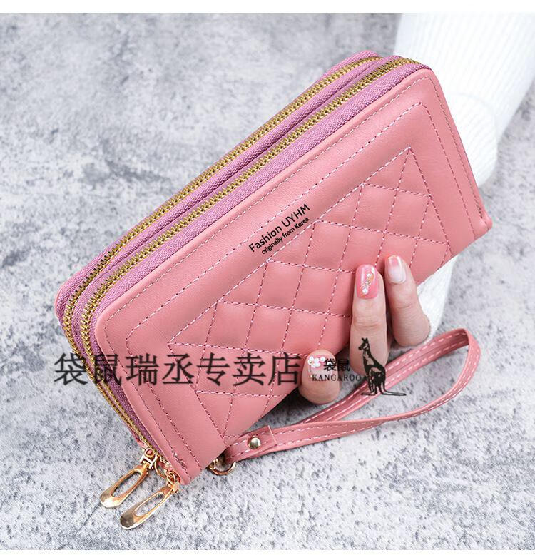 Kangaroo Wallet Women's 2023 New Long Style Women's Hand-held Korean Style Casual Mobile Phone Bag Double Zipper Wallet Large Capacity Card Holder Black
