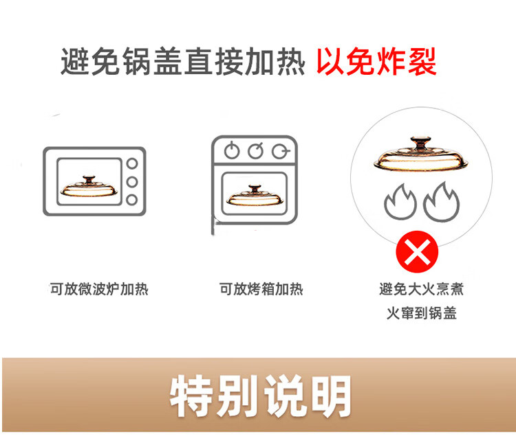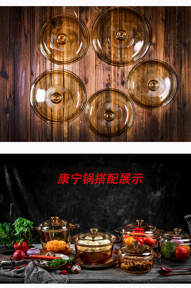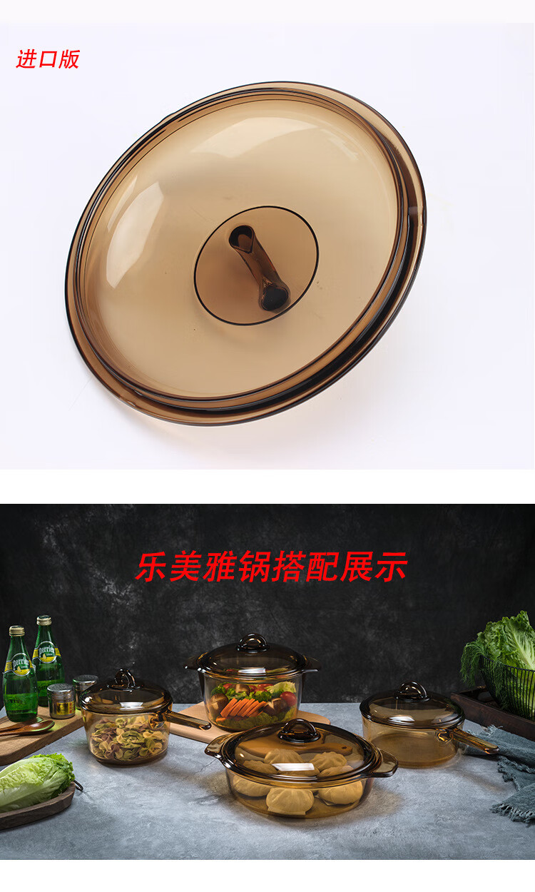 Corning Jingcai original glass pot lid 2.25 1.25 1.5 3.5 5L lid household transparent glass pot lid accessories 2.25L pot lid | pot inner diameter 20.5cm