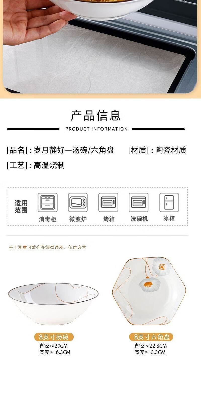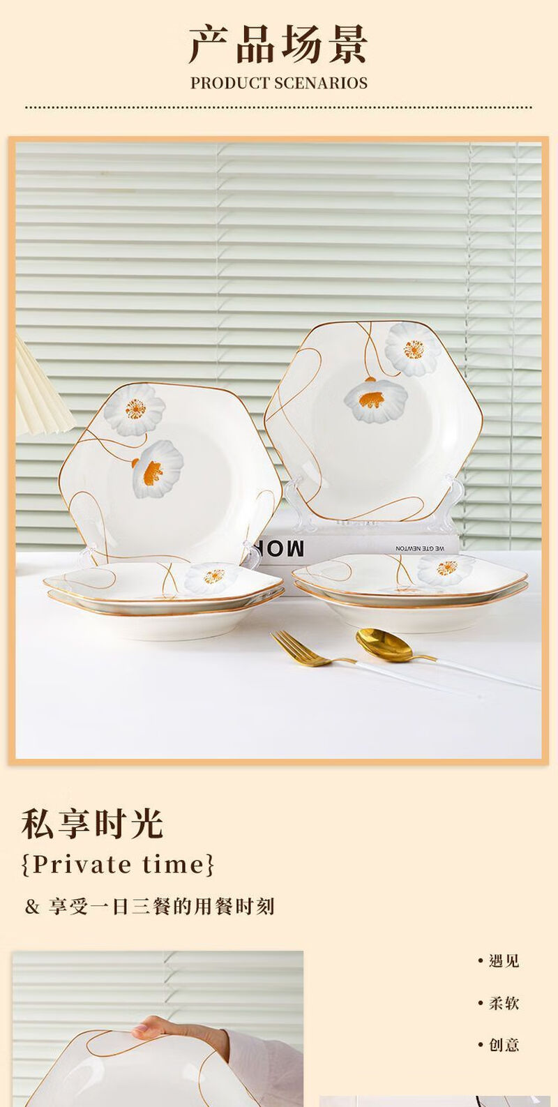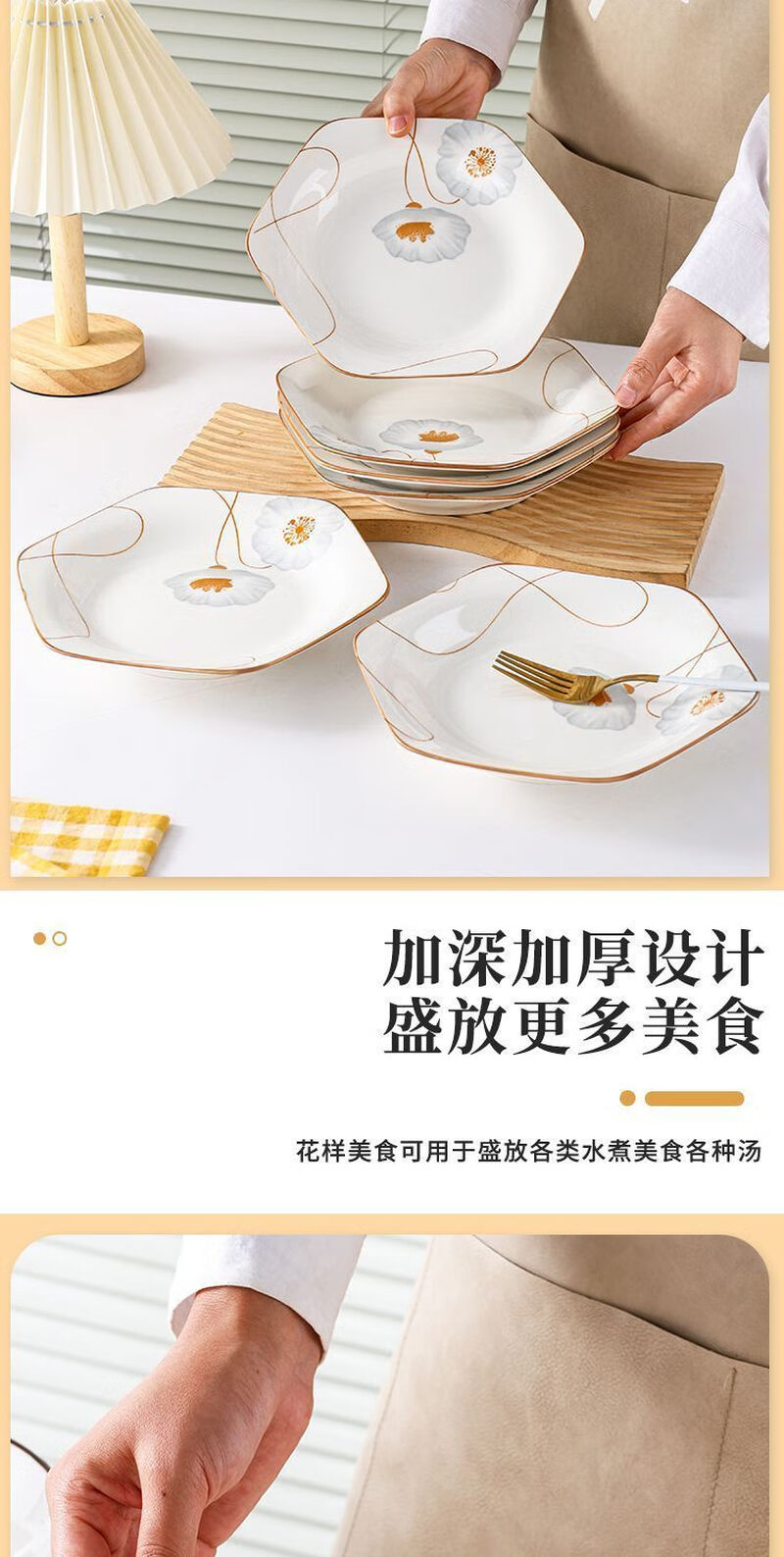 Ceramic plate, Internet celebrity dish plate, home-style 6-corner plate, noodle soup bowl, tableware combination set, Suijinghao series set, 6 9-inch hexagonal plates + 1 8-inch bowl