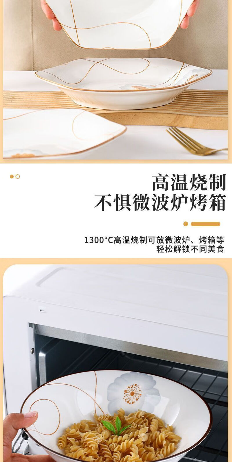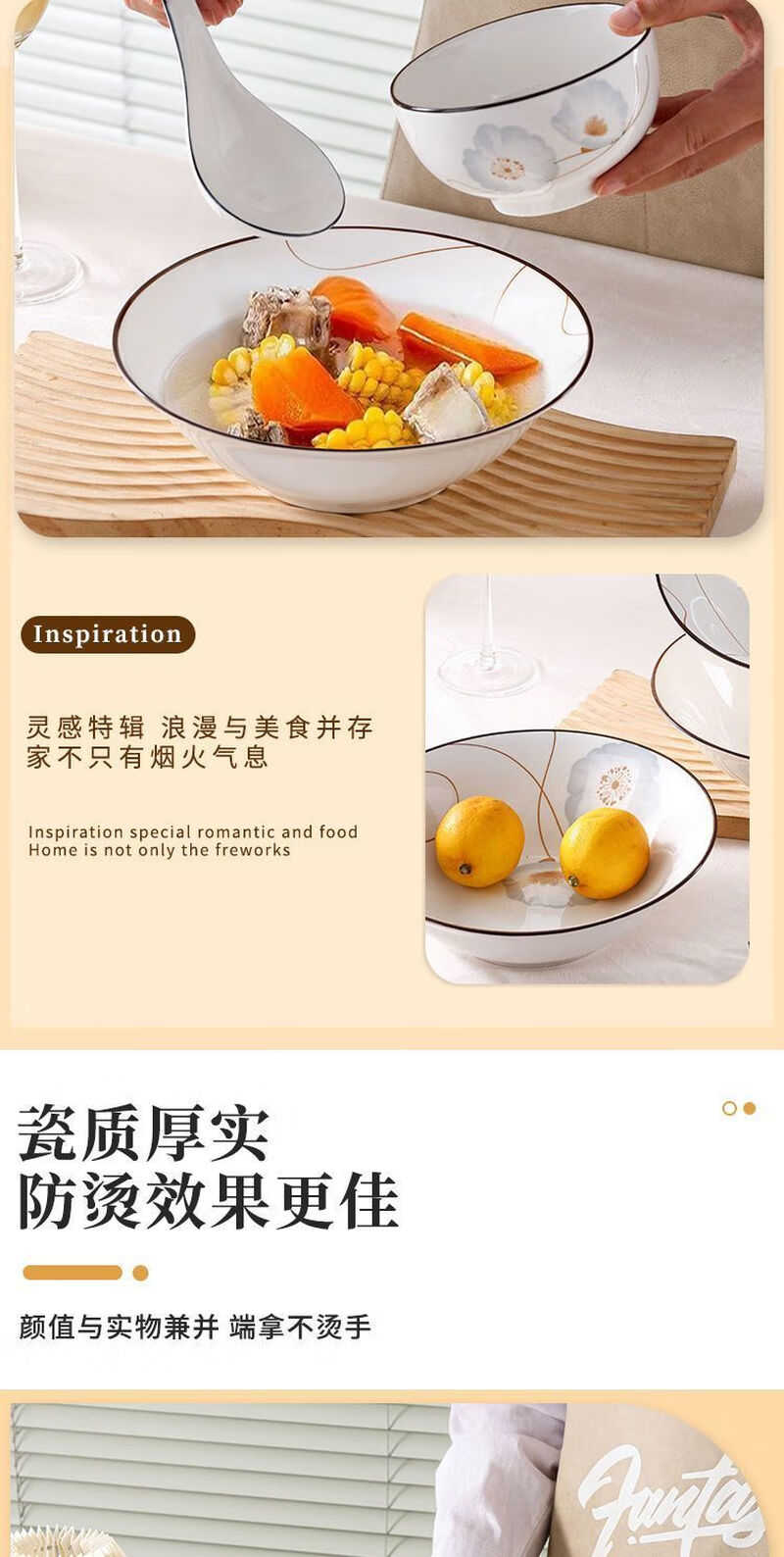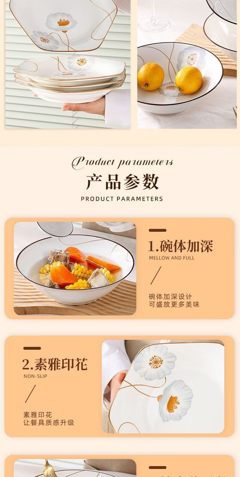 Ceramic plate, Internet celebrity dish plate, home-style 6-corner plate, noodle soup bowl, tableware combination set, Suijinghao series set, 6 9-inch hexagonal plates + 1 8-inch bowl