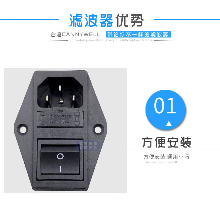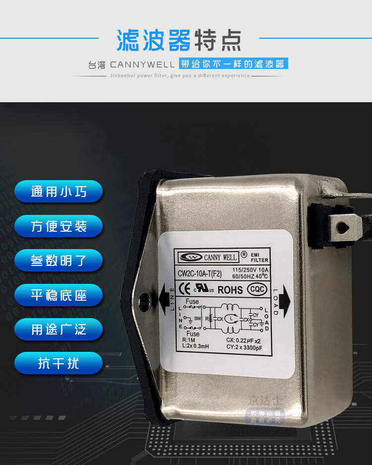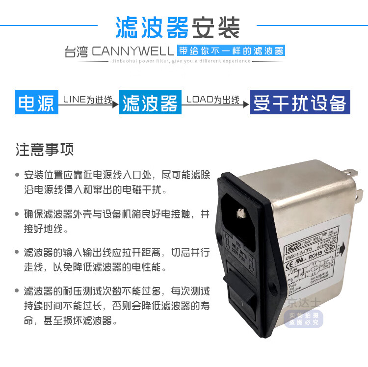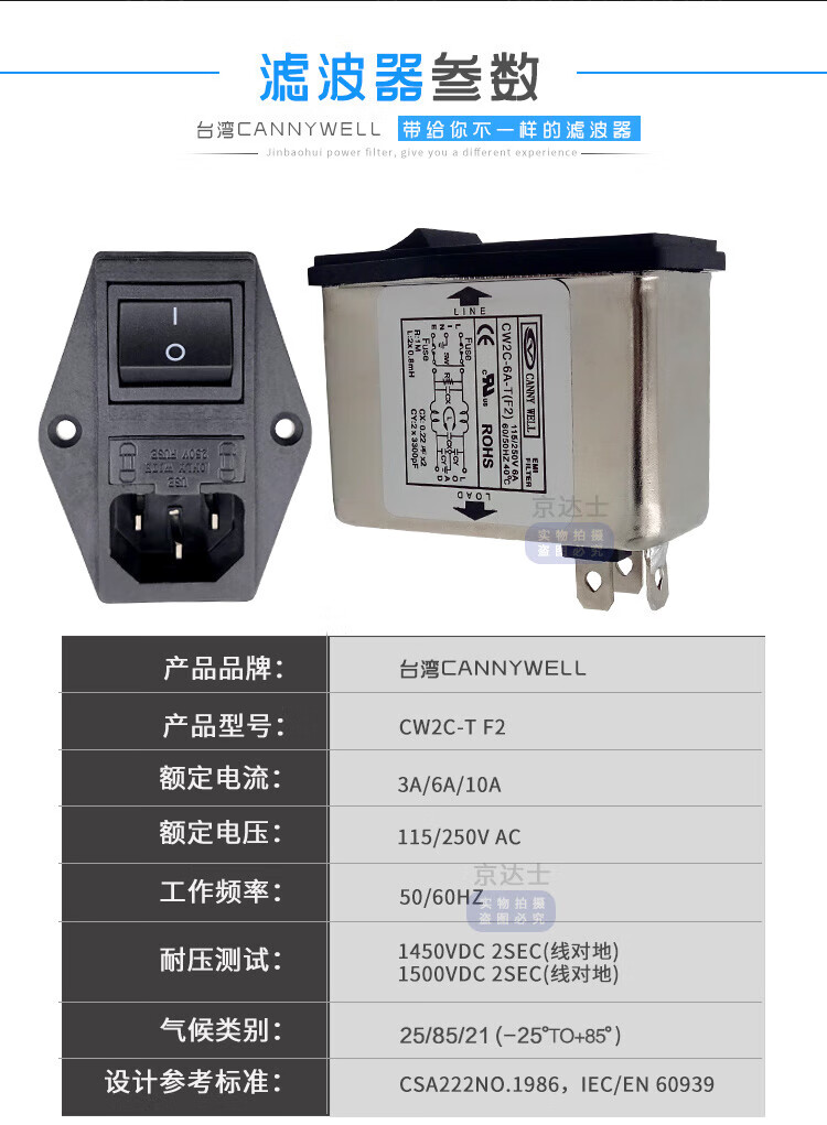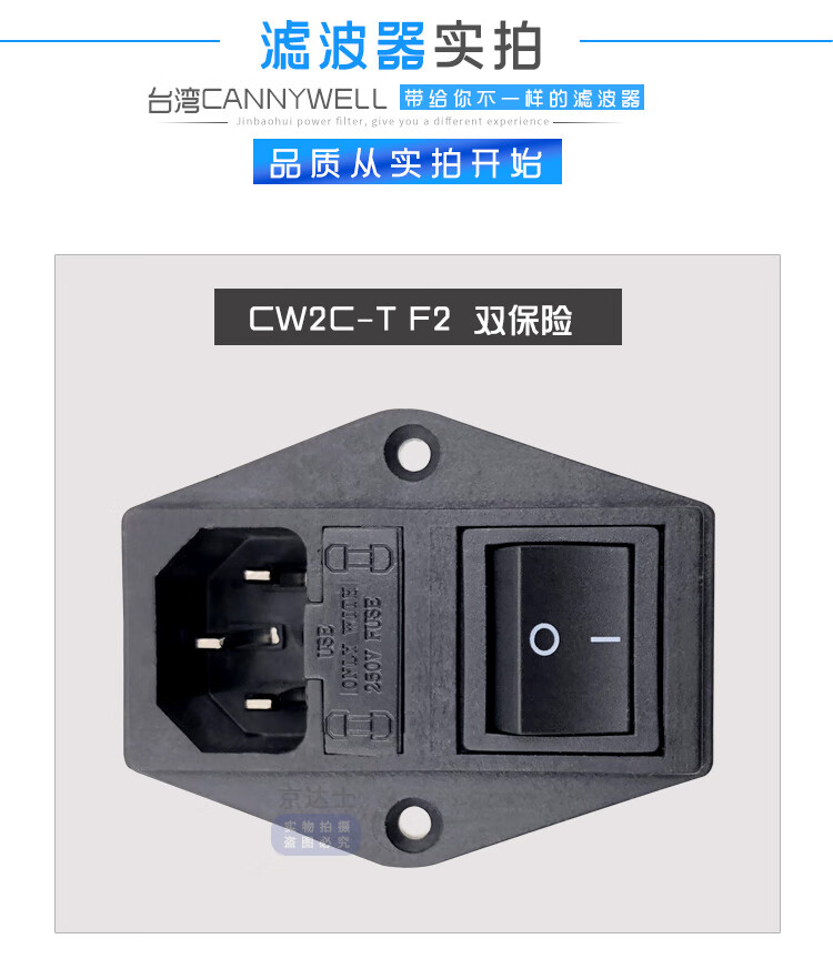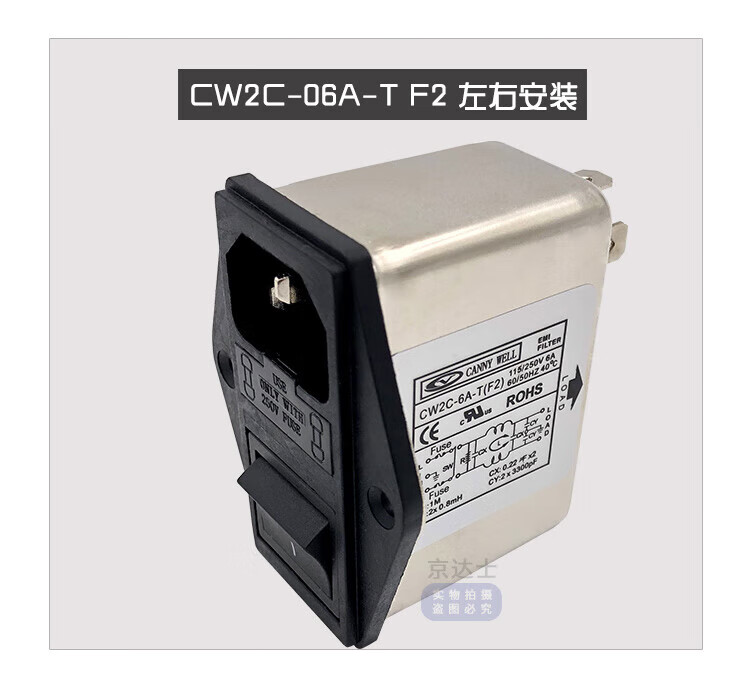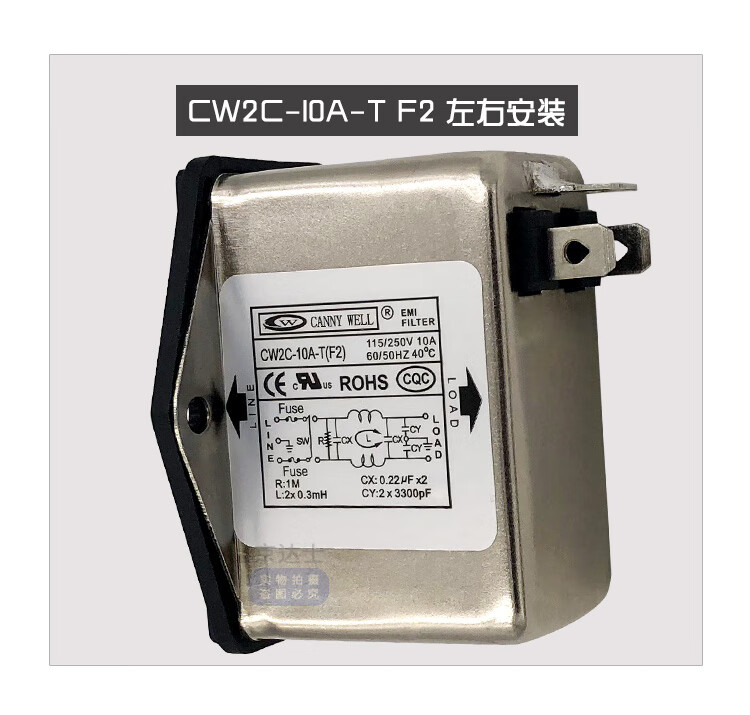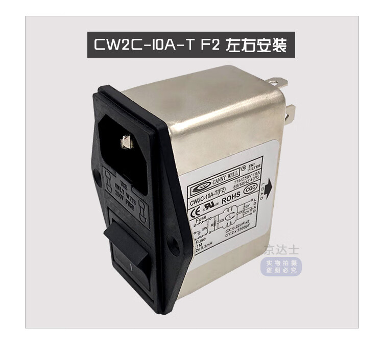 CANN power supply EMI filter CW2C 6A 10A T bipolar F2 socket single-phase AC 220V CW2C-10A-T (F2) double insurance left and right installation