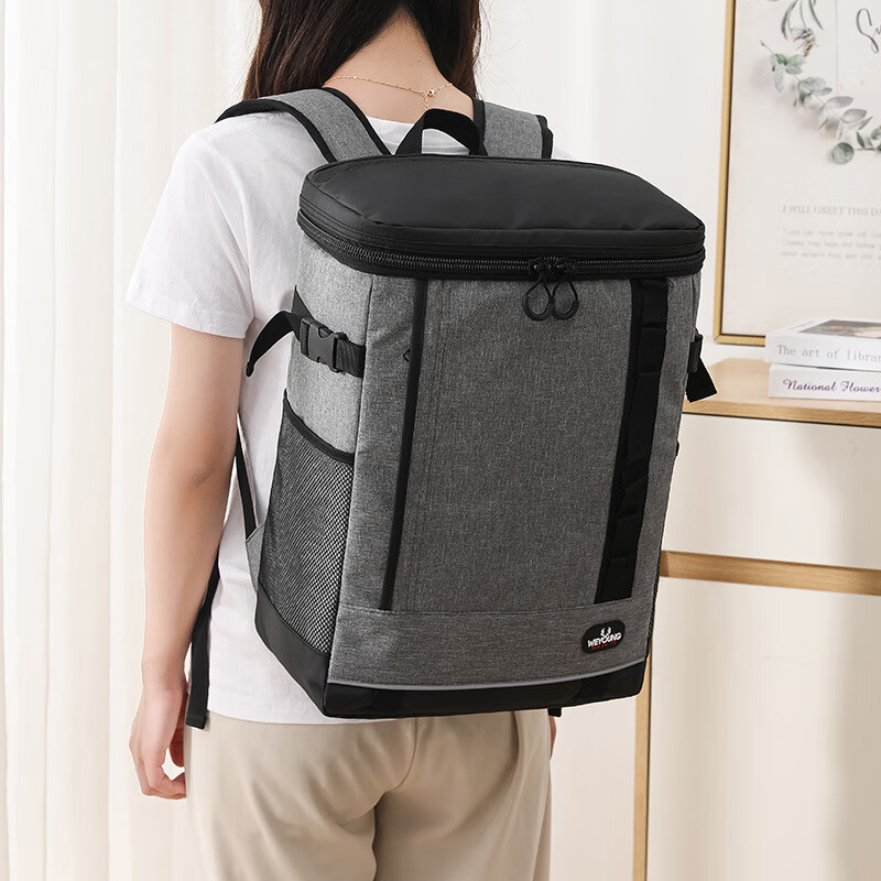 Benchi Insulated Bag Refrigerated Backpack Outdoor Mountaineering Fresh Ice Bag Picnic Backpack Leak-proof and Thickened Gray