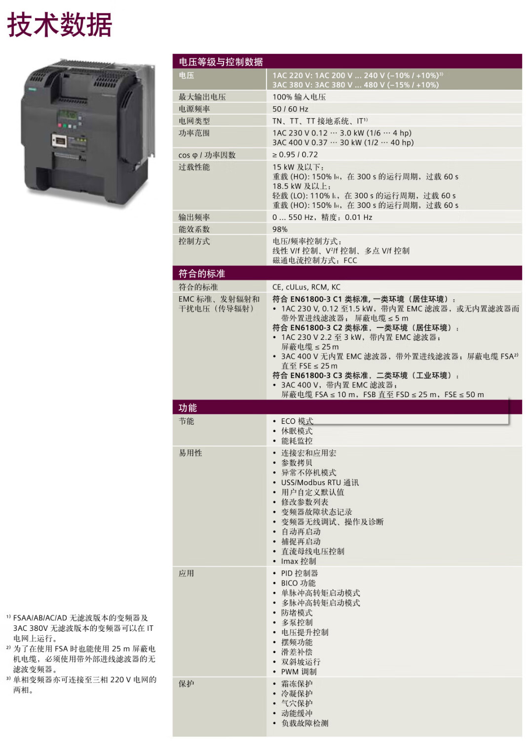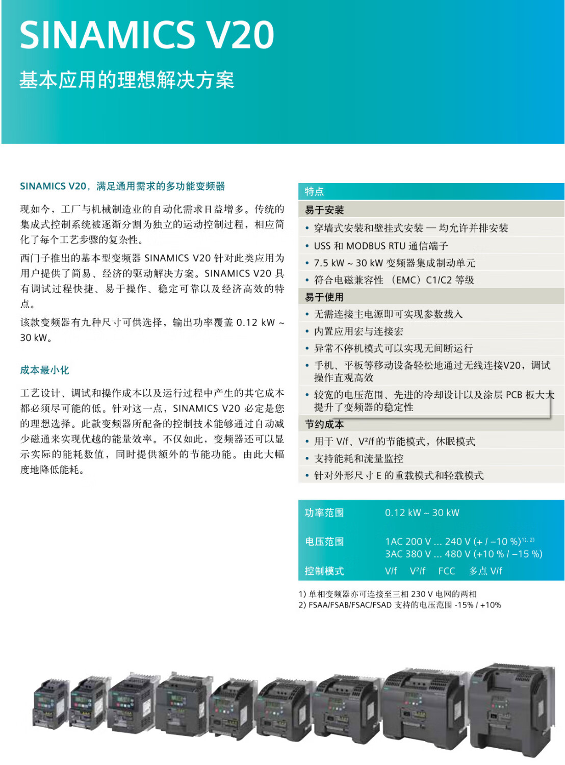 New Siemens inverter SIEMENS V20 three-phase/single-phase 6SL3210 universal frequency conversion 1.1KW 6SL3210-5BE21-1UV1