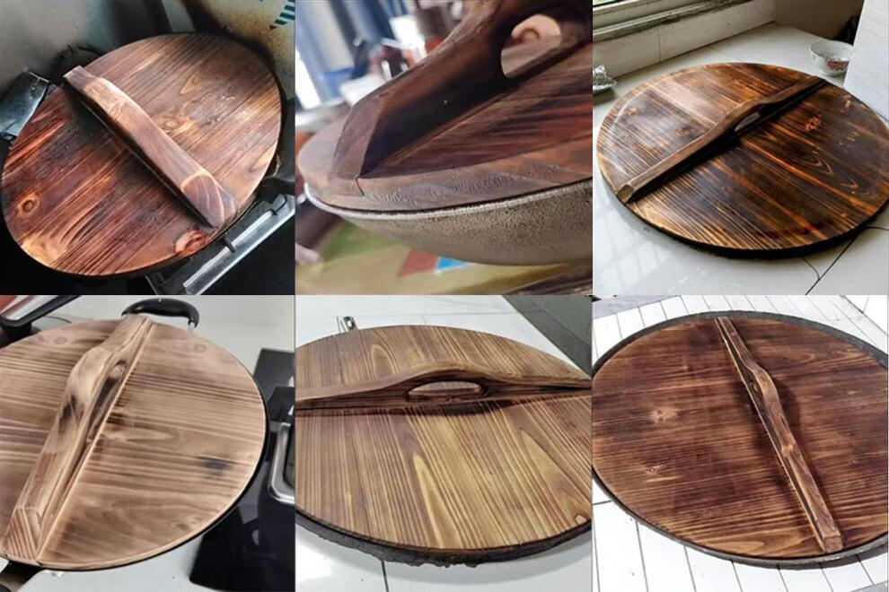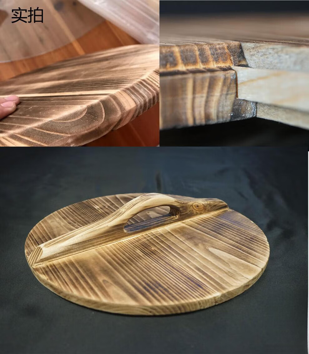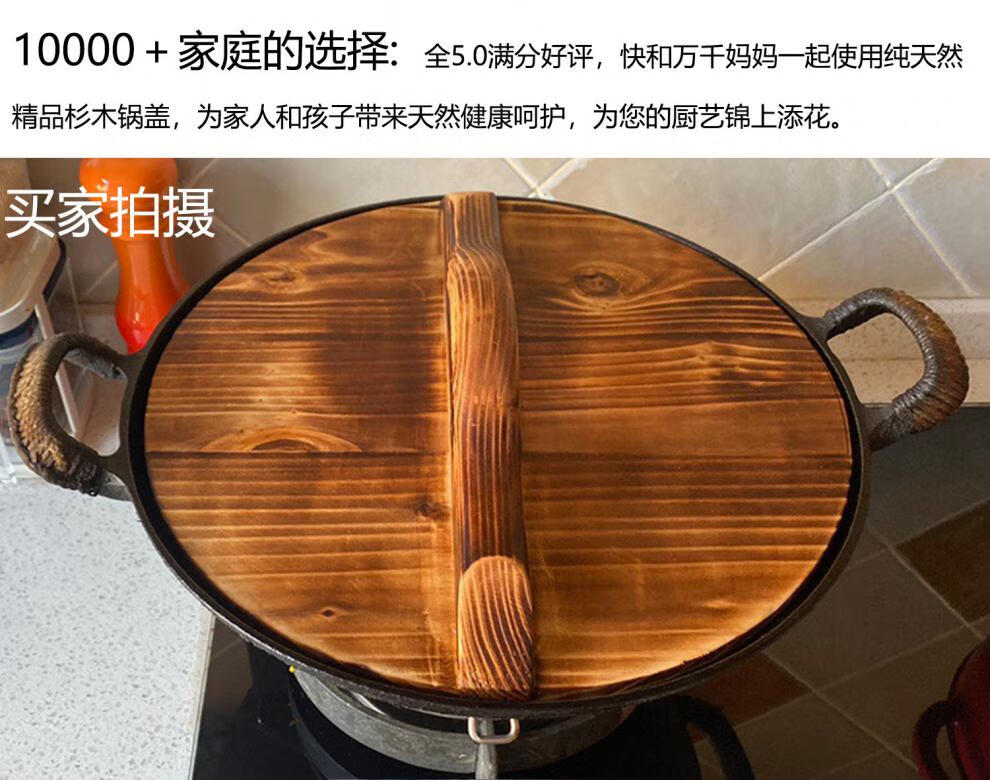 The Legend of the Pot Thickened Old-fashioned Large Pot Lid Household Customized Wooden Iron Pot with Handle Solid Wood Extra Large Round Wooden Lid for Insulation Diameter 28cm