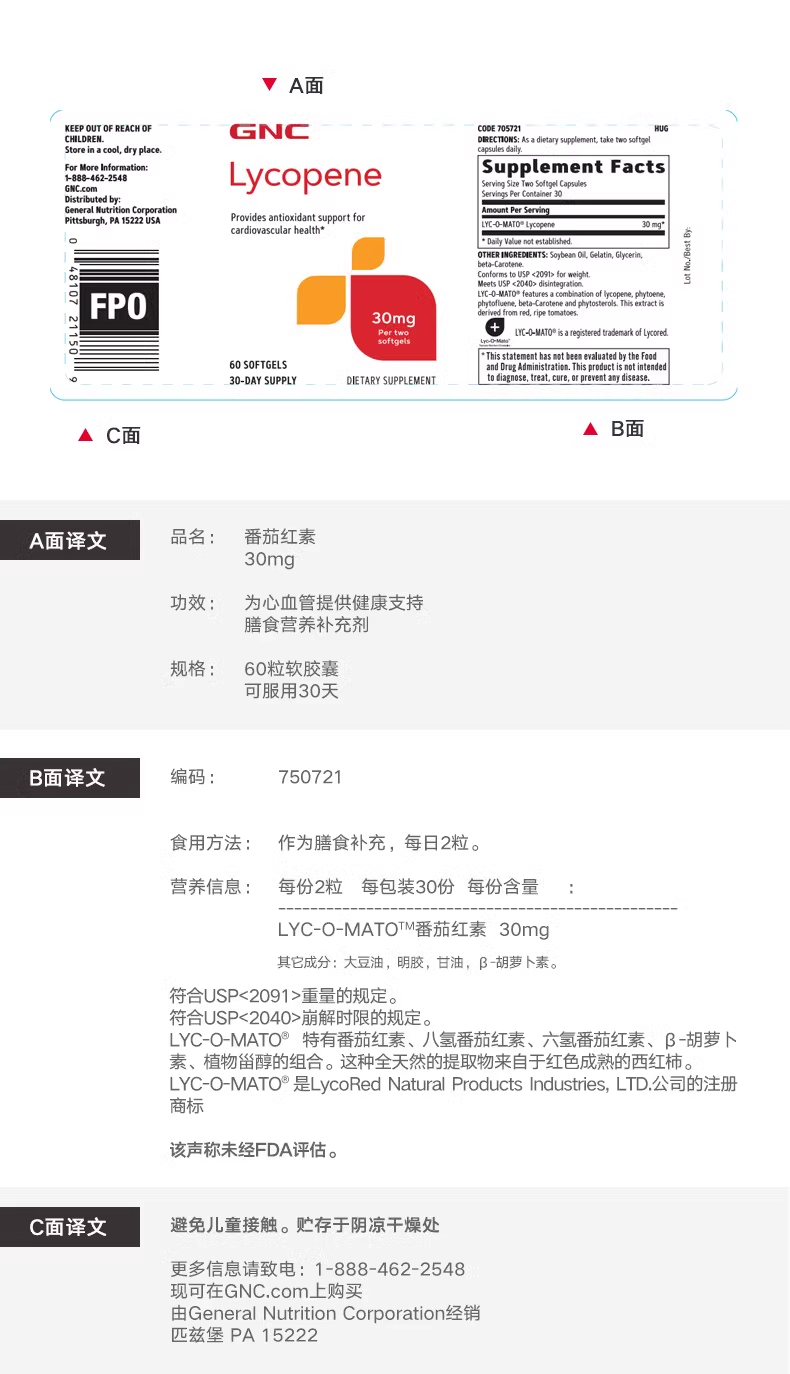 Jianxi USA imported lycopene soft capsules for men to prepare for pregnancy and improve sperm quality 60 capsules/bottle Lycopene 60 capsules/bottle (two capsules contain 30mg)