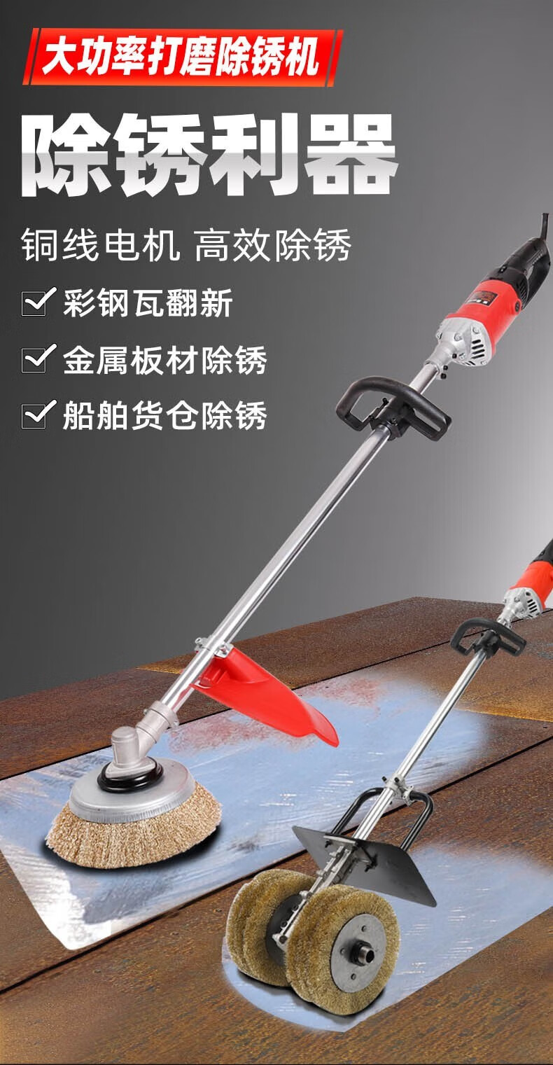 Aaron Hercules rust remover electric high-power color steel tile iron and steel renovation machine rust removal wire brush grinding and polishing machine lithium battery model 2 batteries 1.5 meters brushless forward + 3 small brushes
