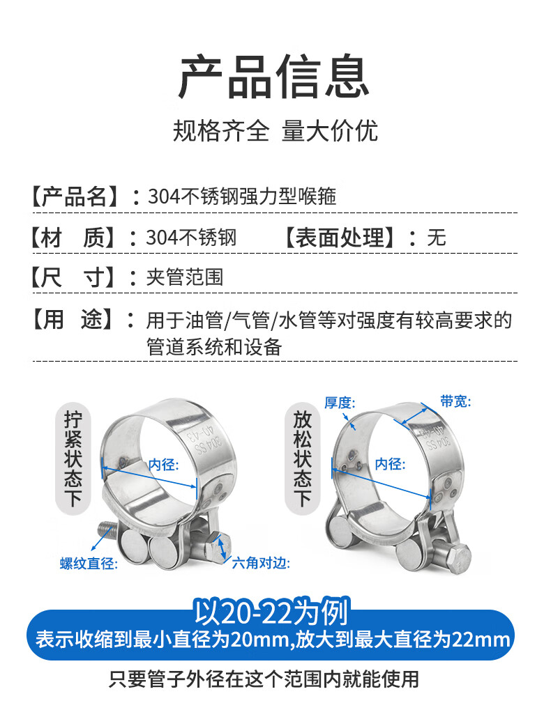Jinggong (JINGGONG) 304 stainless steel/galvanized strong hose clamp European style hose clamp water pipe oil pipe fixed pipe clamp buckle 17-19mm