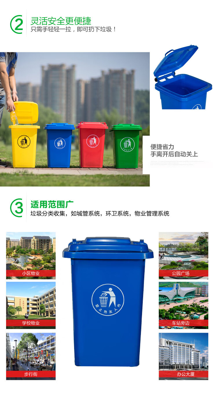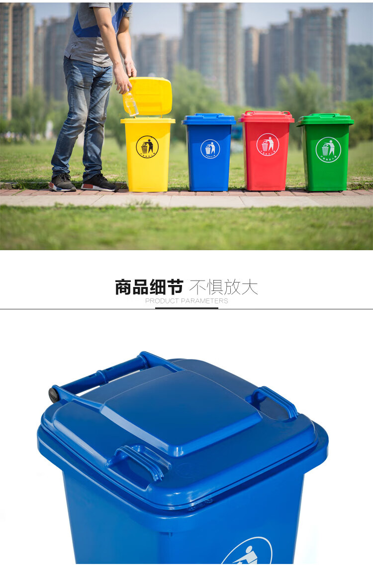 Beijing garbage classification trash can 30 liters 50L large with cover outdoor kitchen plastic commercial hotel 240 30L wheel classification red