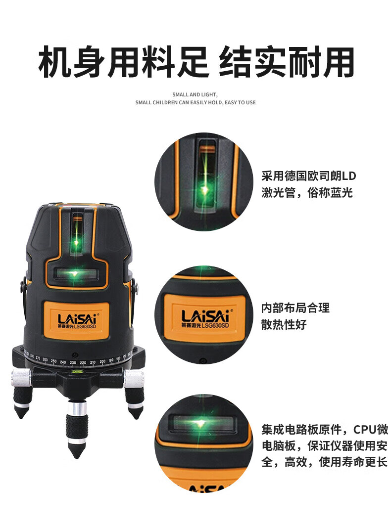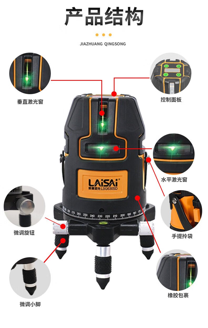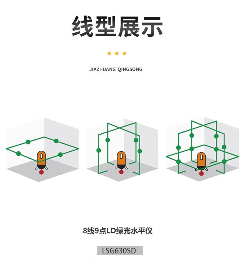 Laser laser infrared LSG630PD level green light 8-line high-precision electronic leveling laser bricklaying instrument for plastering and dotting 8 lines 9 points Standard configuration of Laser 630