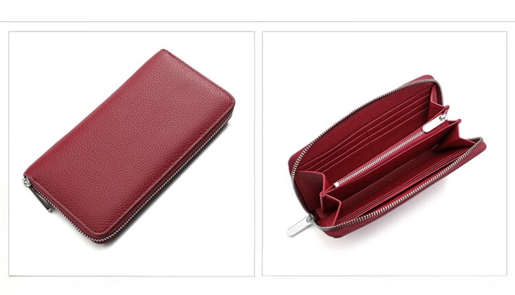 Kangaroo (KANGAROO) 2024 Qixi Women's Genuine Leather Long Wallet First-layer Cowhide Women's Clutch Wallet First-layer Cowhide Burgundy Collection Priority Shipping