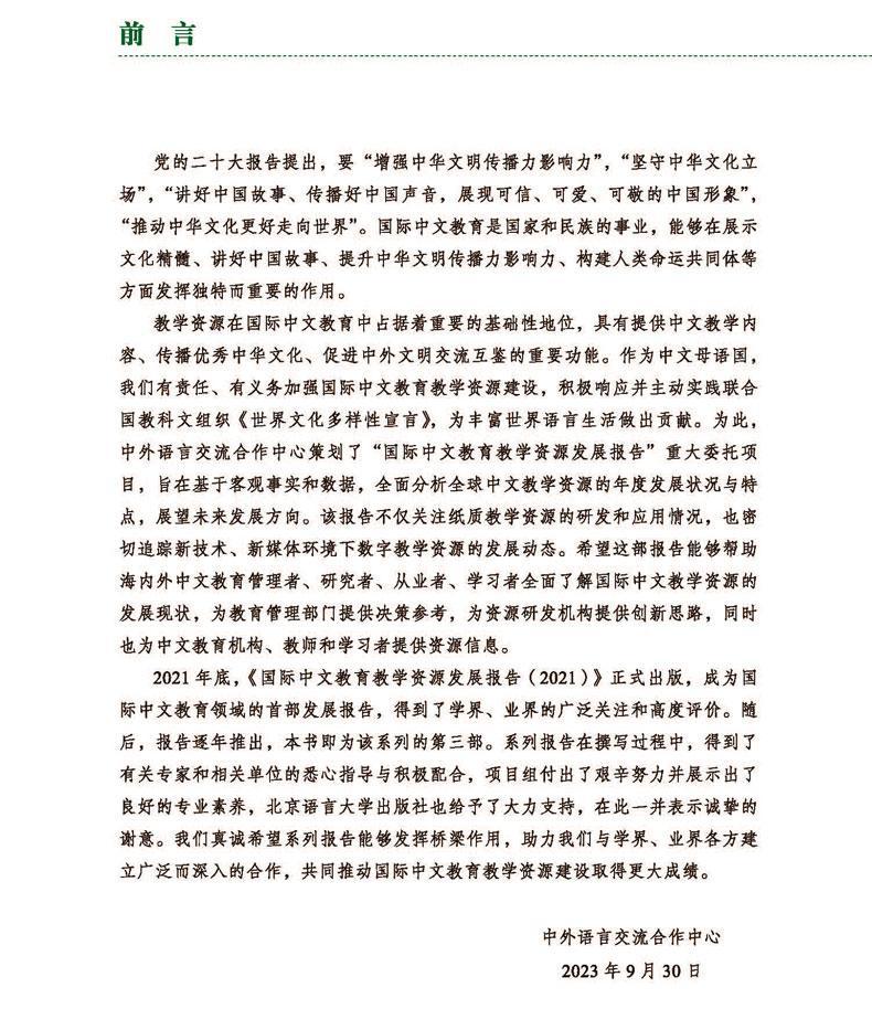| 《国际中文教育教学资源发展报告.23》由中外语言交流合作中心组编 |
