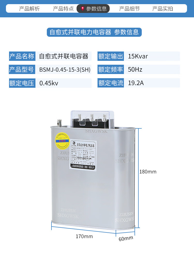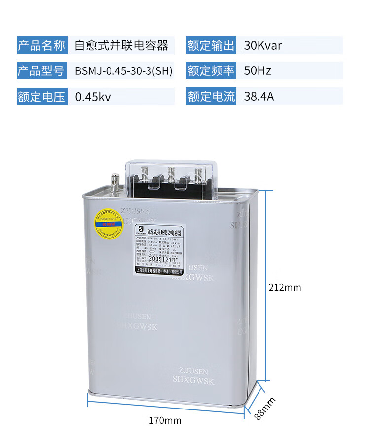 Self-healing parallel power capacitor BSMJ0.45-30-3 30kvar0.4KV20 25kvar BSMJ0.45-2-3