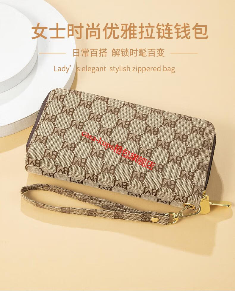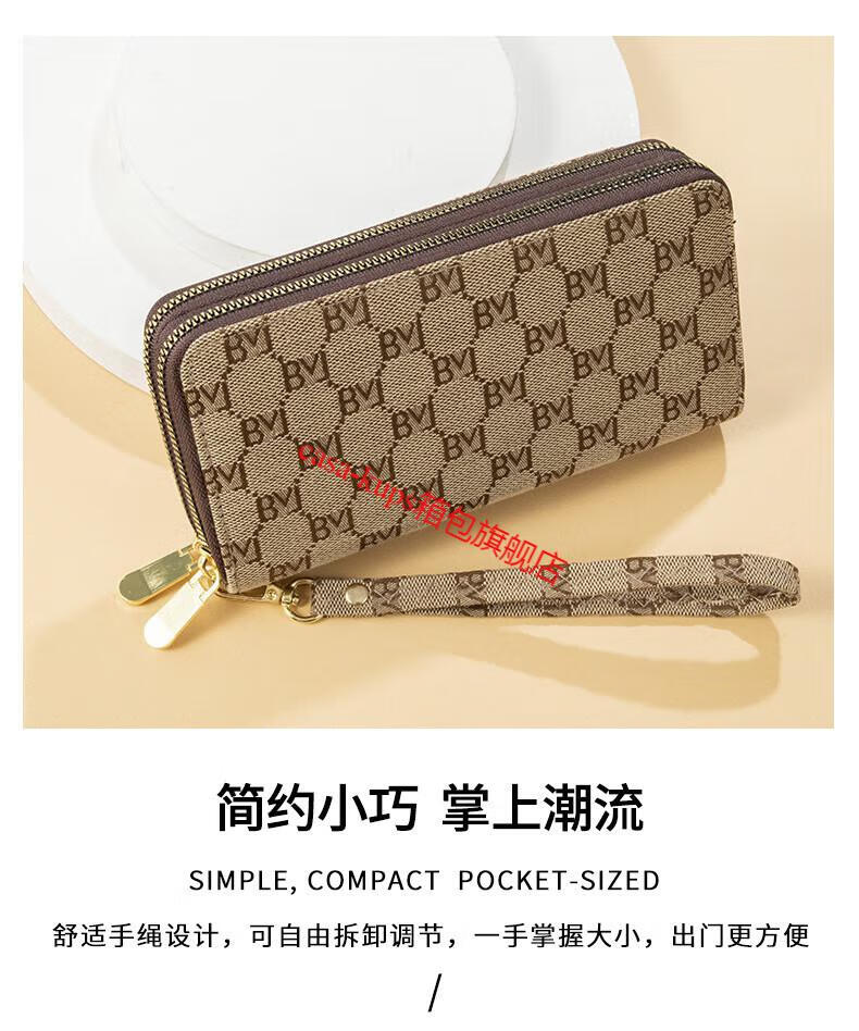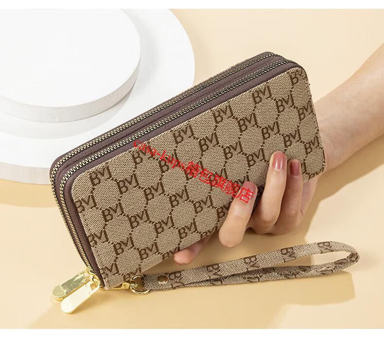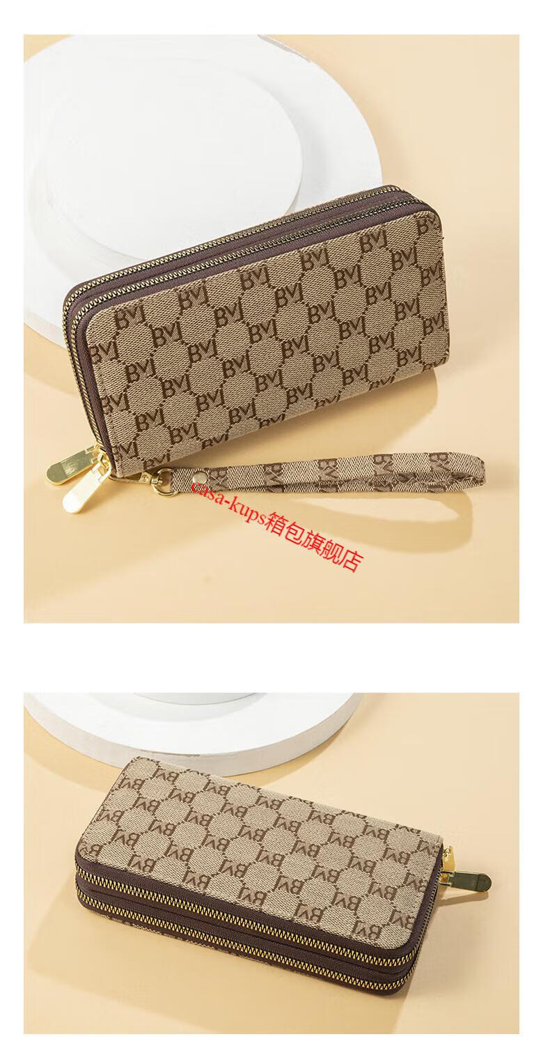 Casa-kupsCK women's bag light luxury simple double zipper wallet long women's clutch large capacity European and American fashion dark coffee color