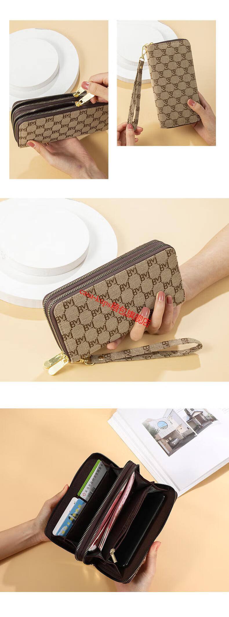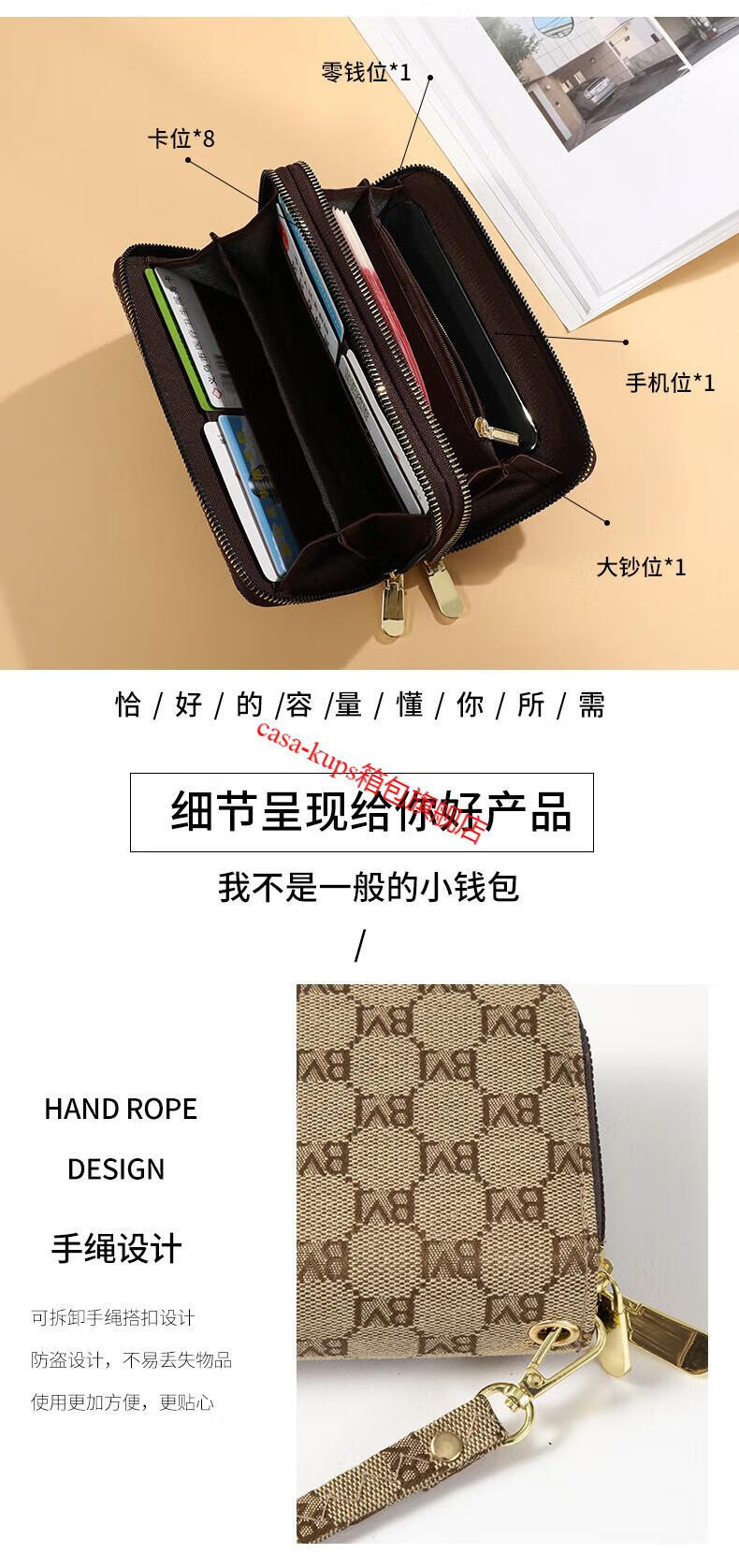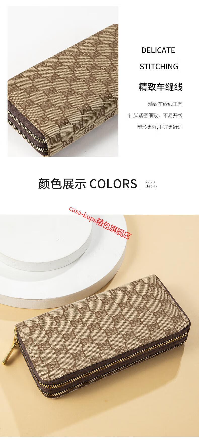 Casa-kupsCK women's bag light luxury simple double zipper wallet long women's clutch large capacity European and American fashion dark coffee color