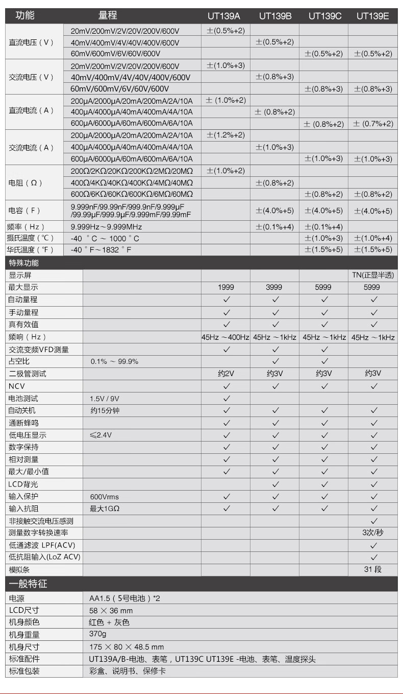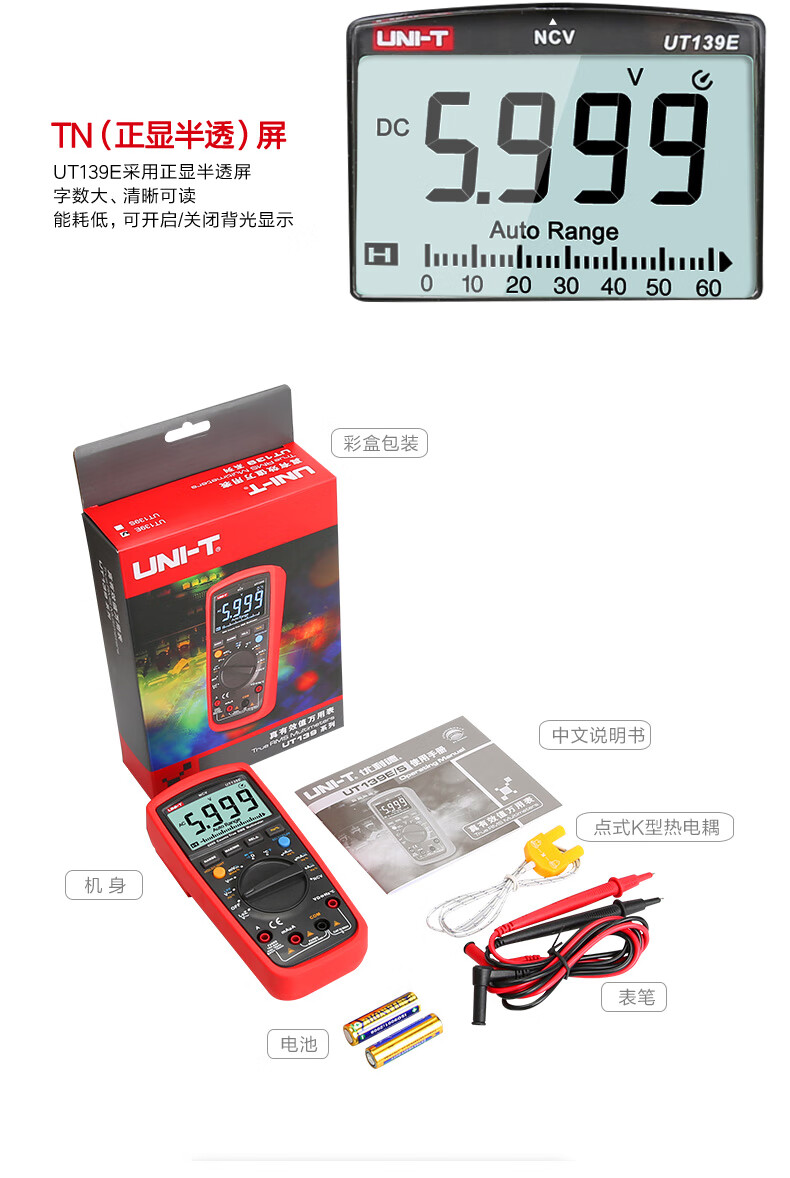 Uliide UT139A multimeter digital high-precision multimeter anti-burn digital display fully automatic electrician multimeter UT139E UT139S (industrial products)