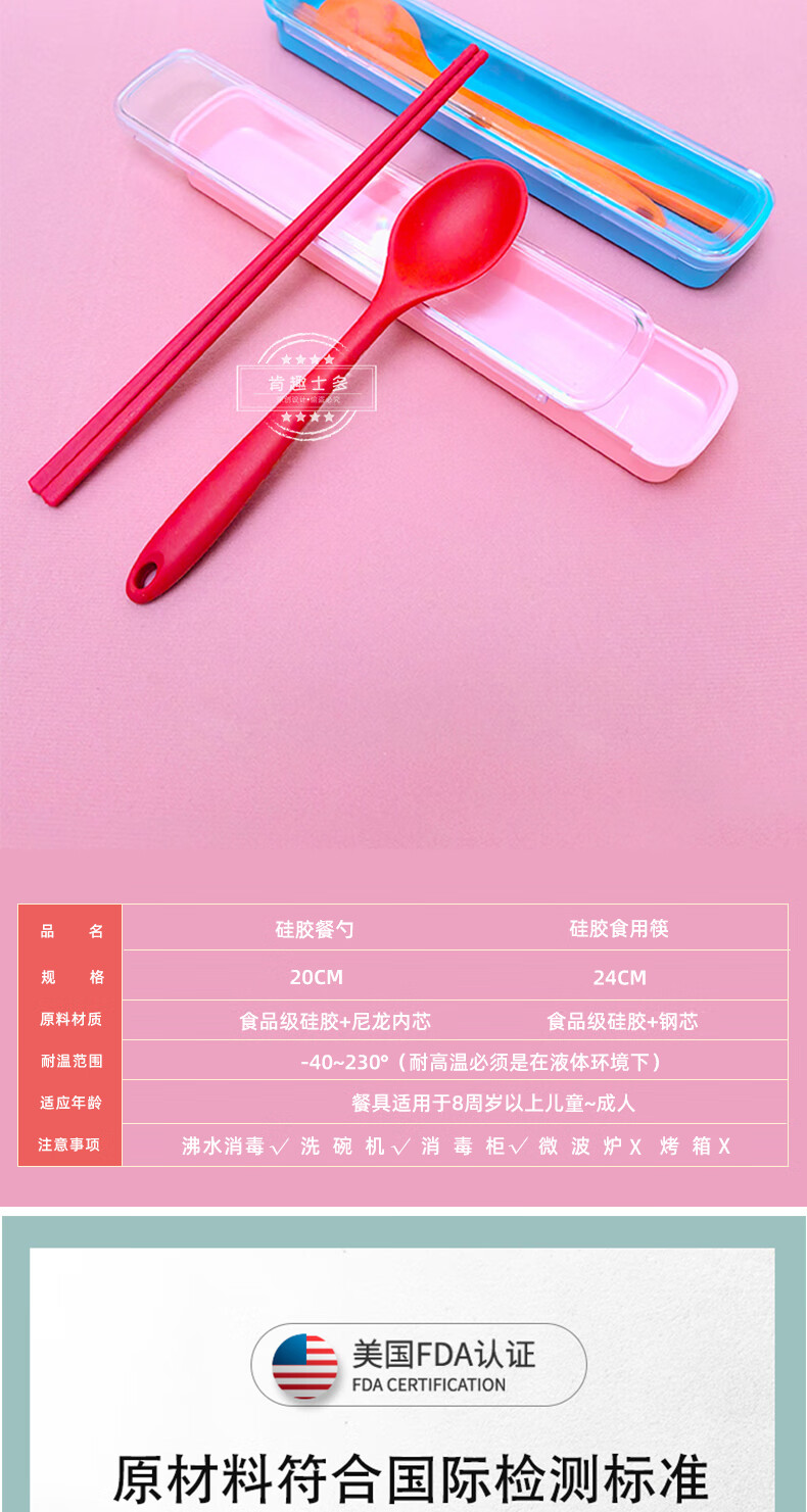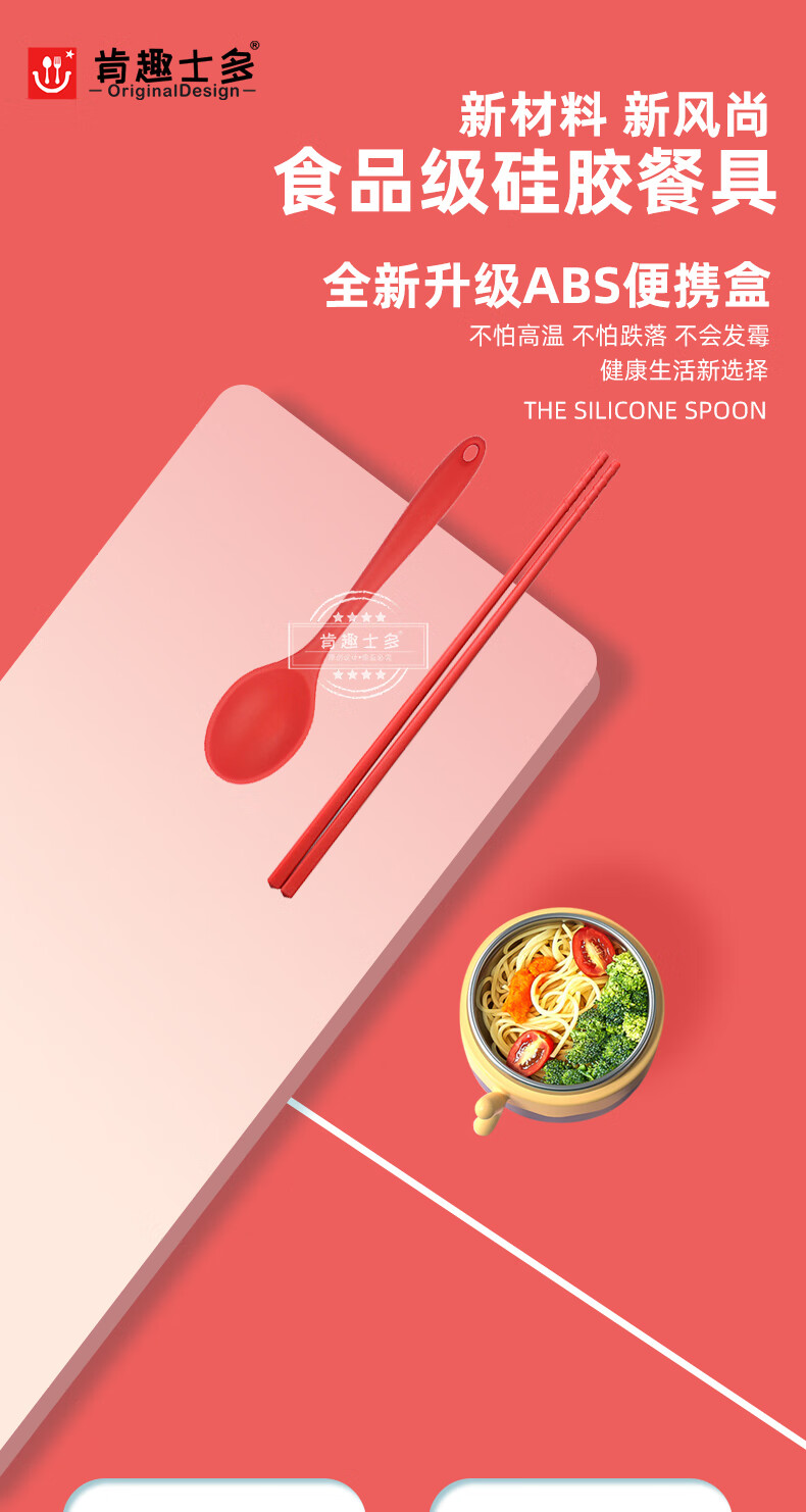 Kenqushiduo Nordic chopsticks and spoon set food grade silicone portable box set high temperature resistant student adult catering outdoor red thick head chopsticks + spoon