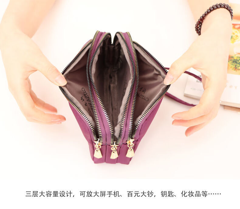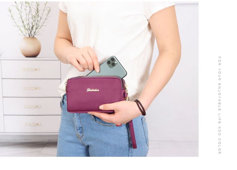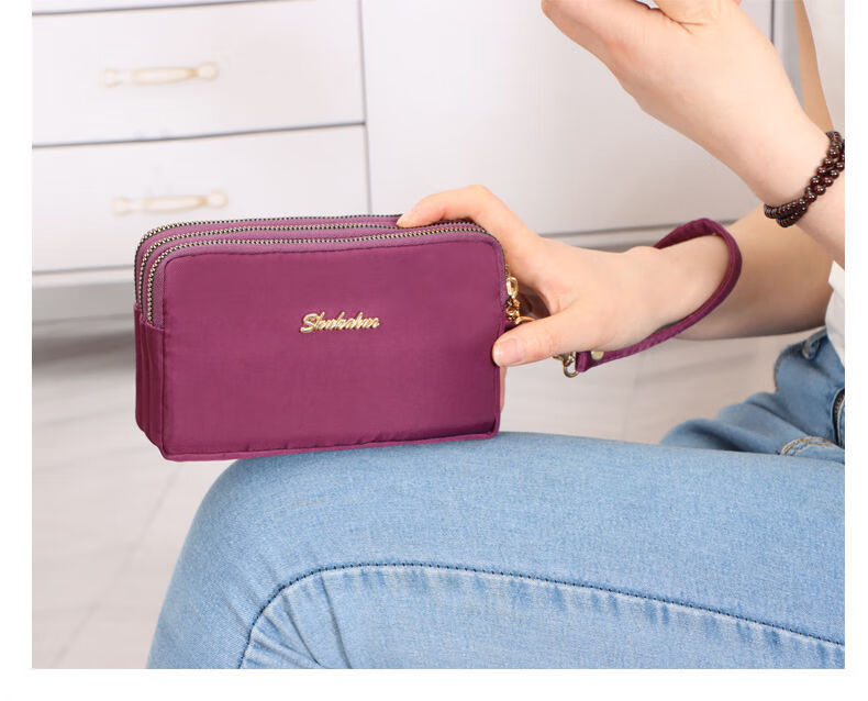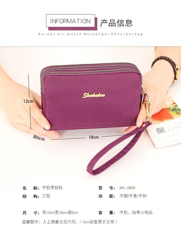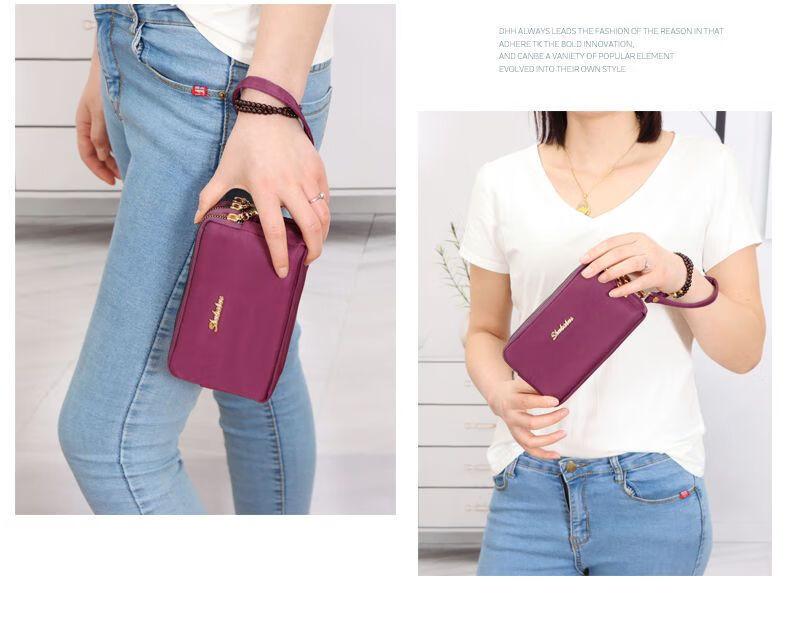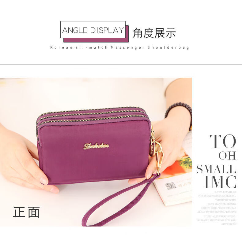 QUEENJOY large capacity three-in-one bag mobile phone bag mom clutch bag portable wrist bag with long wallet coin purse purple