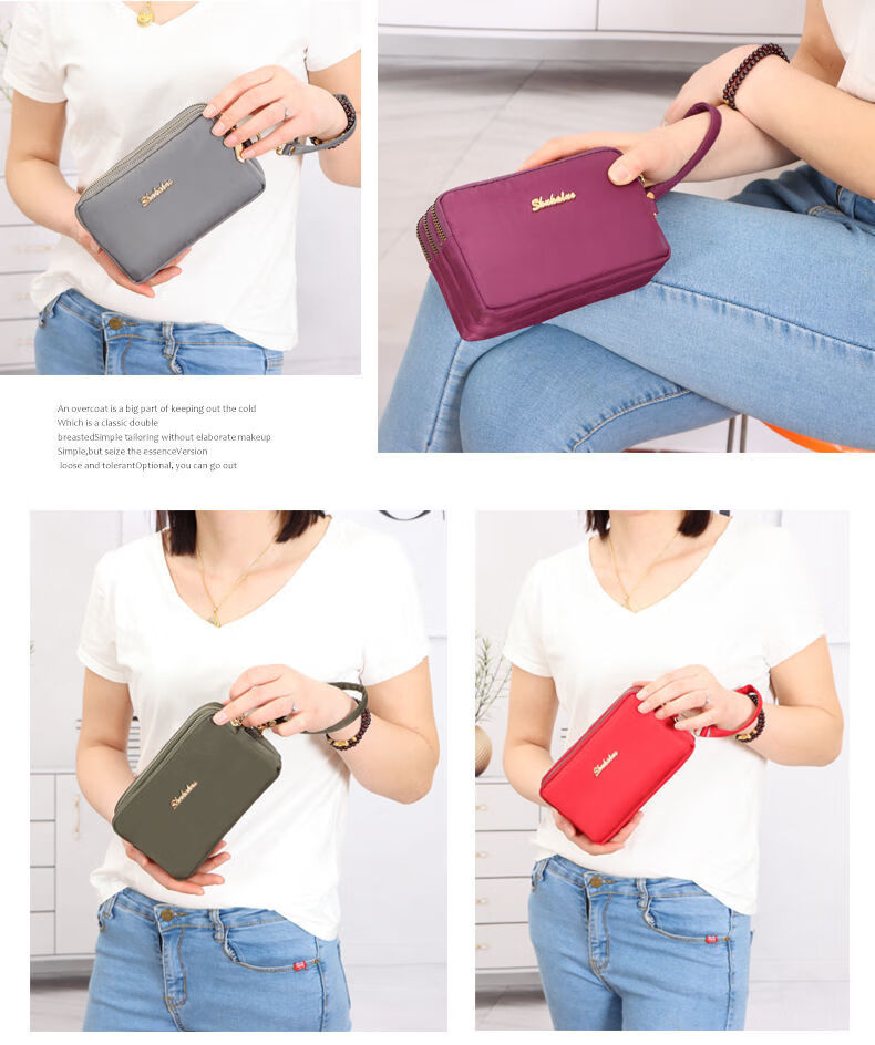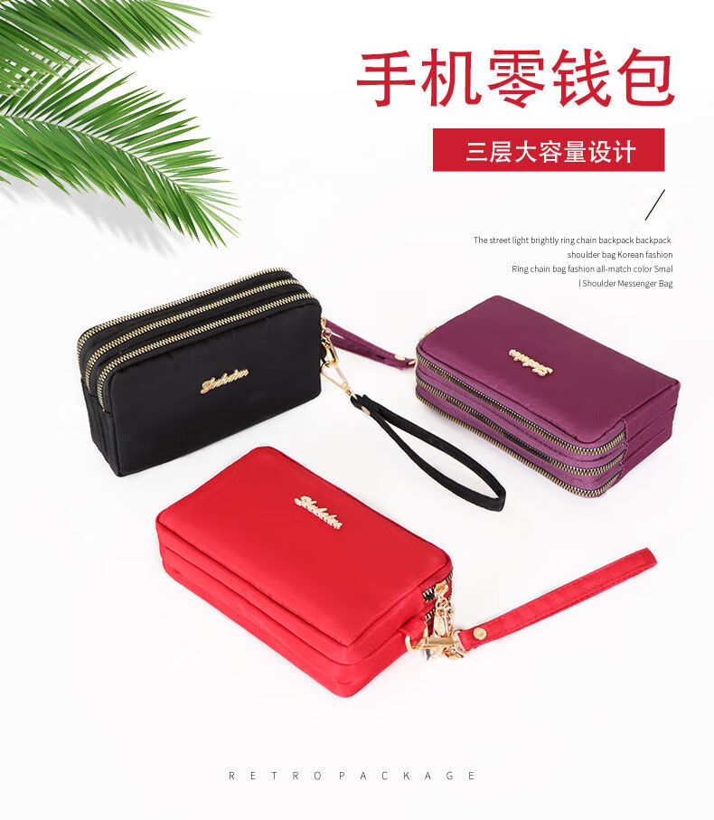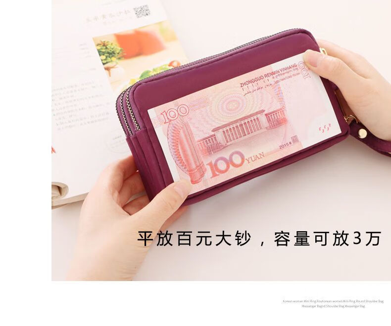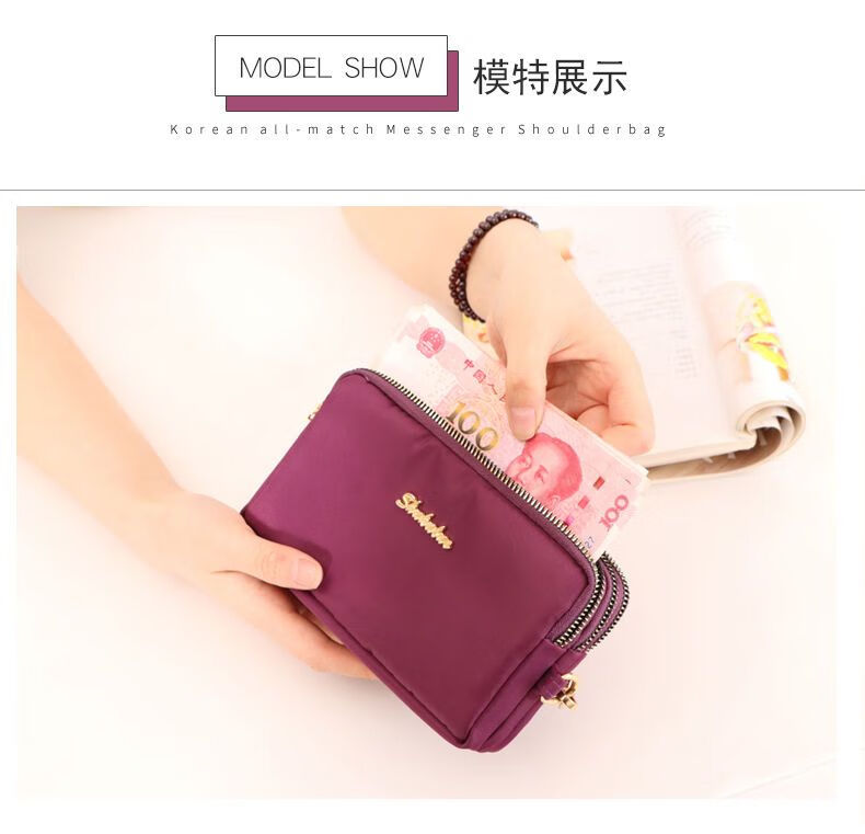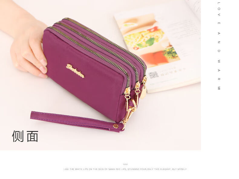 QUEENJOY large capacity three-in-one bag mobile phone bag mom clutch bag portable wrist bag with long wallet coin purse purple