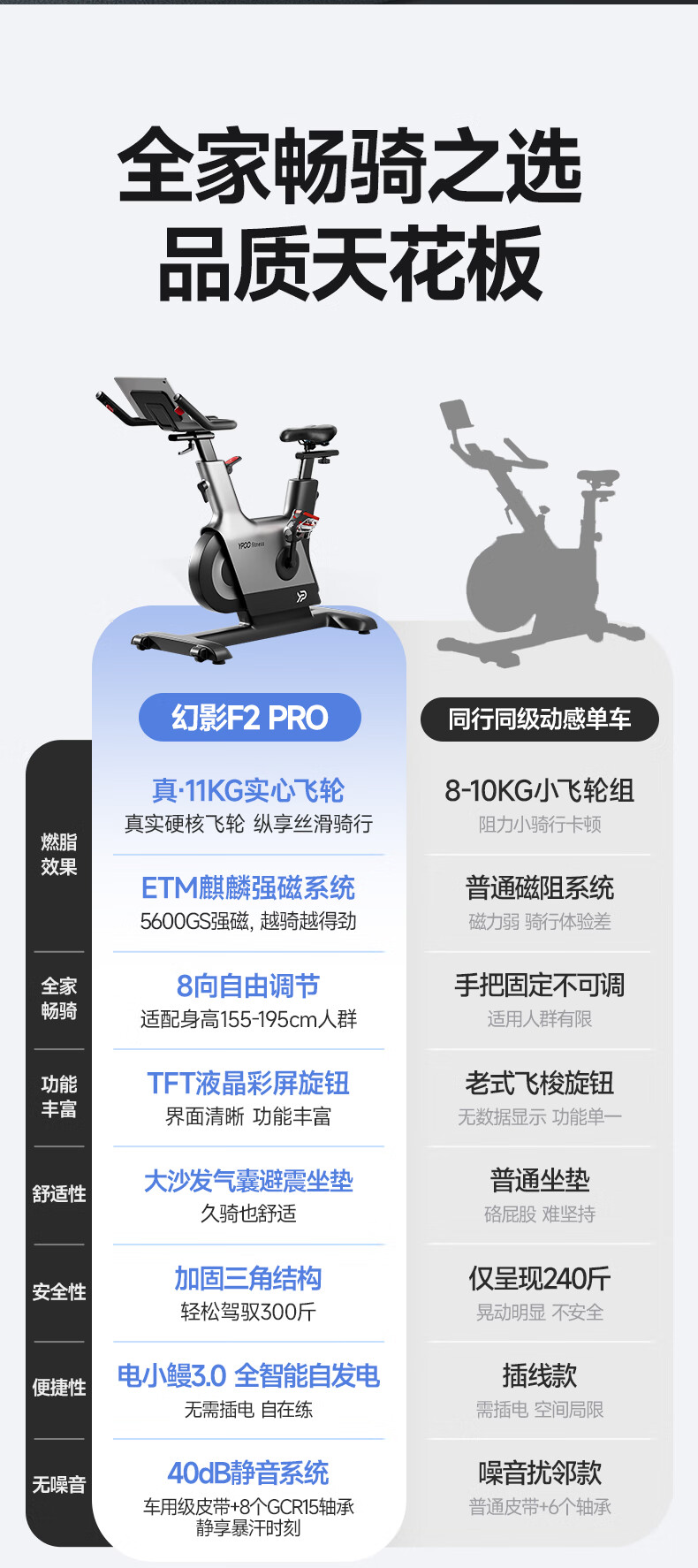 YPOO Spinning Bike National Standard Drafter Home Intelligent Spontaneous Electromagnetic Control Silent Exercise Bike Phantom F2 PRO Professional Edition - True 11KG Flywheel/8-way Free Adjustment